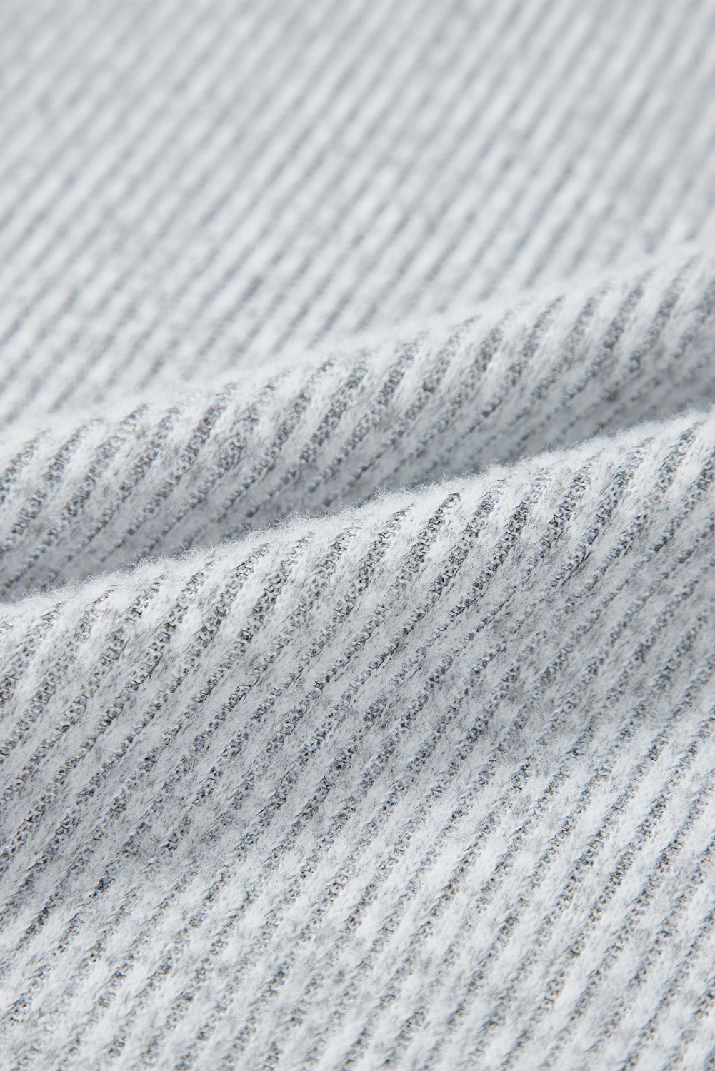 Light Grey Color Contrast Ribbed Loose Fit Long Sleeve Top