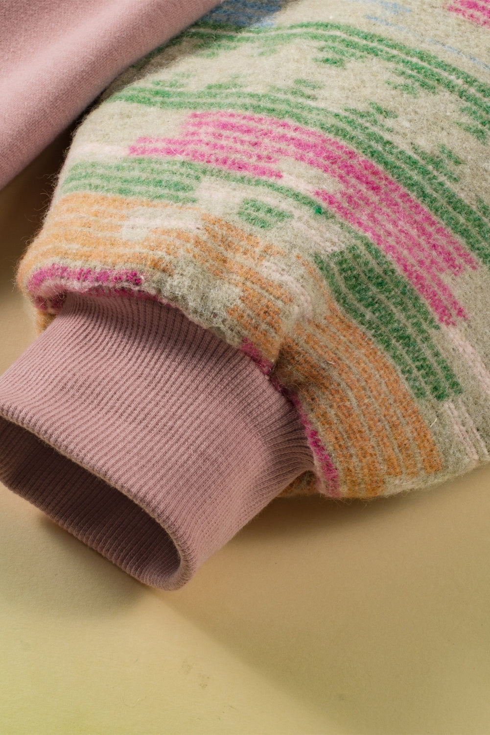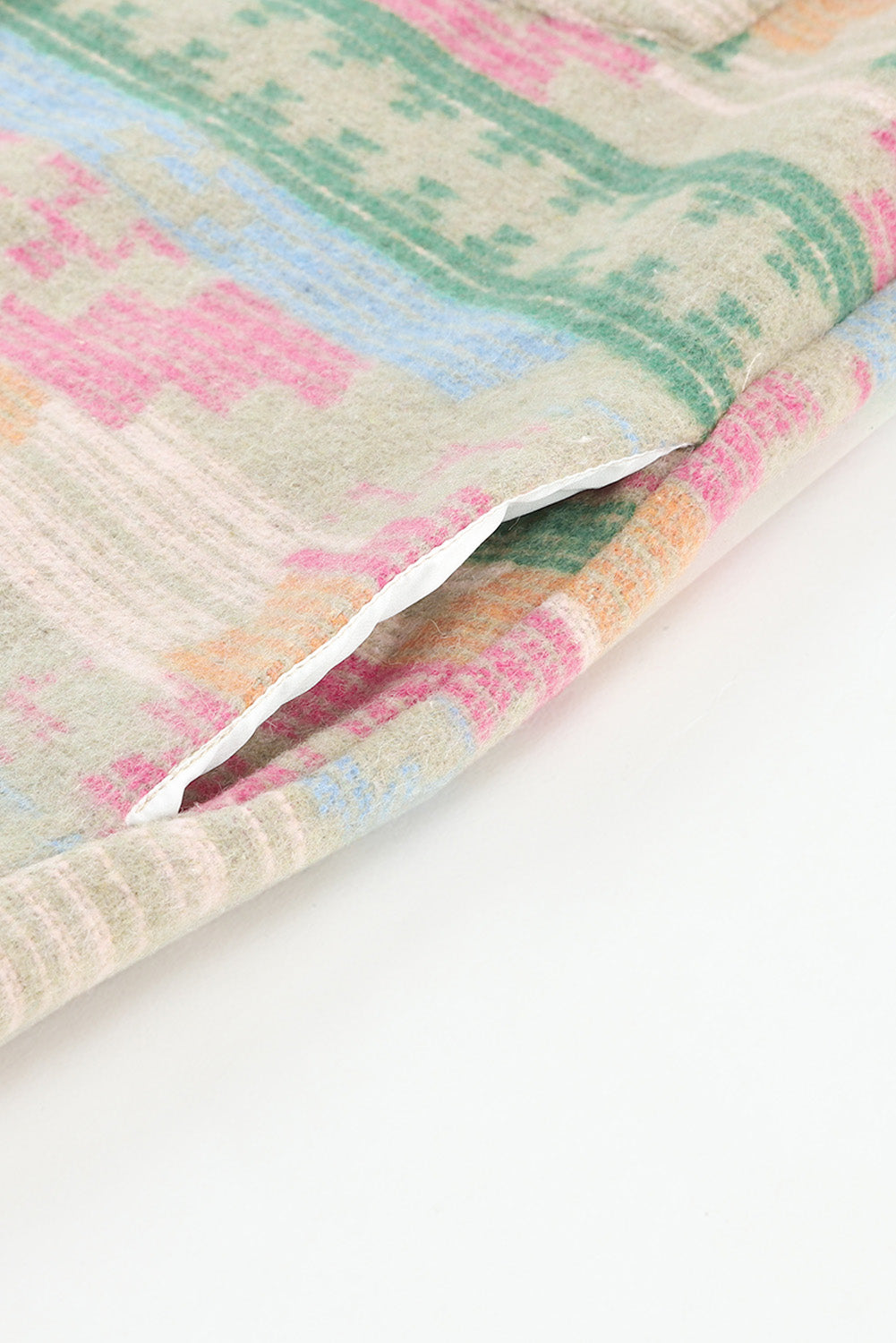 Light Pink Aztec Patch Drawstring Hooded Zip Up Jacket