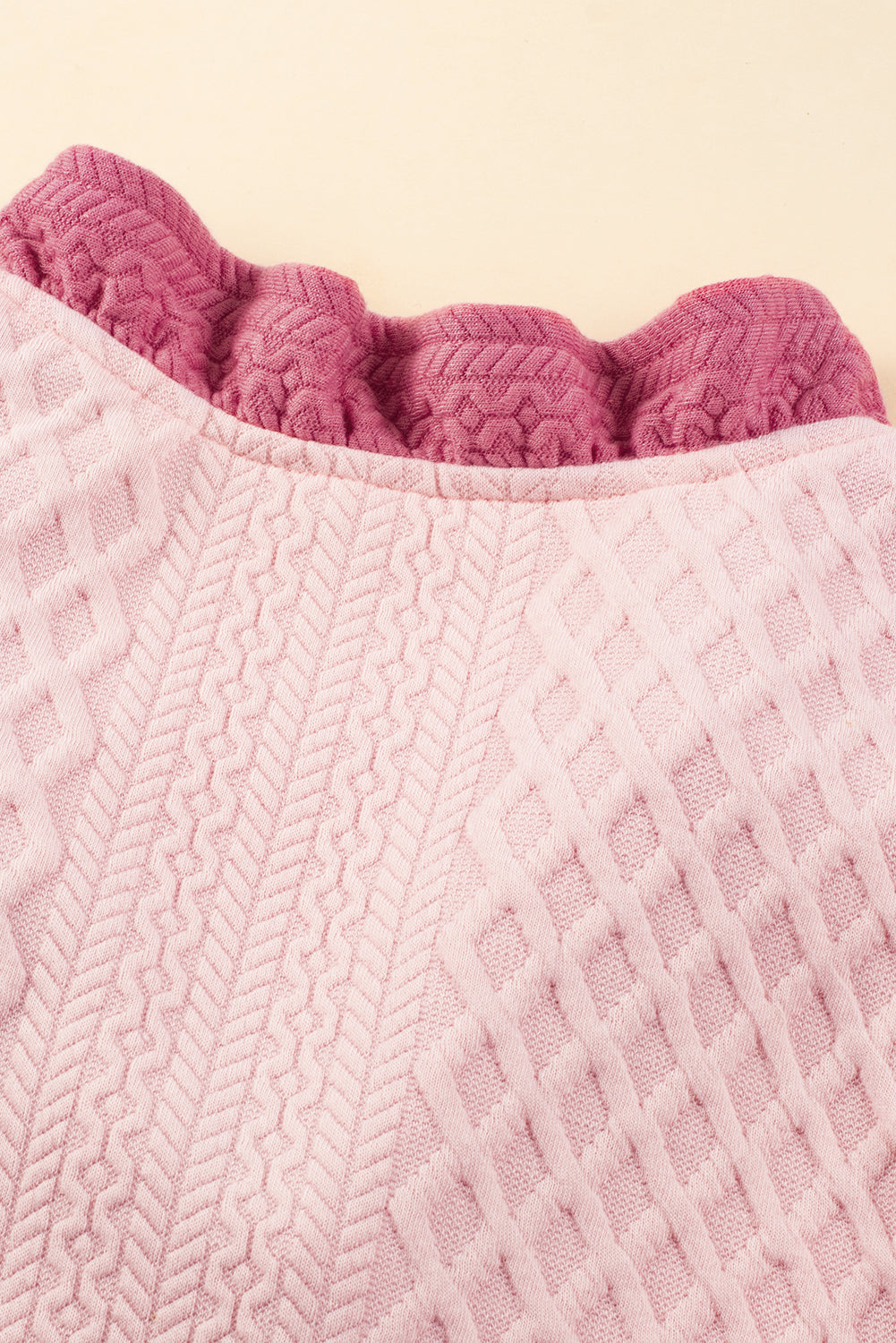 Light Pink Textured Puff Sleeve Ruffled V Neck Shift Mini Dress