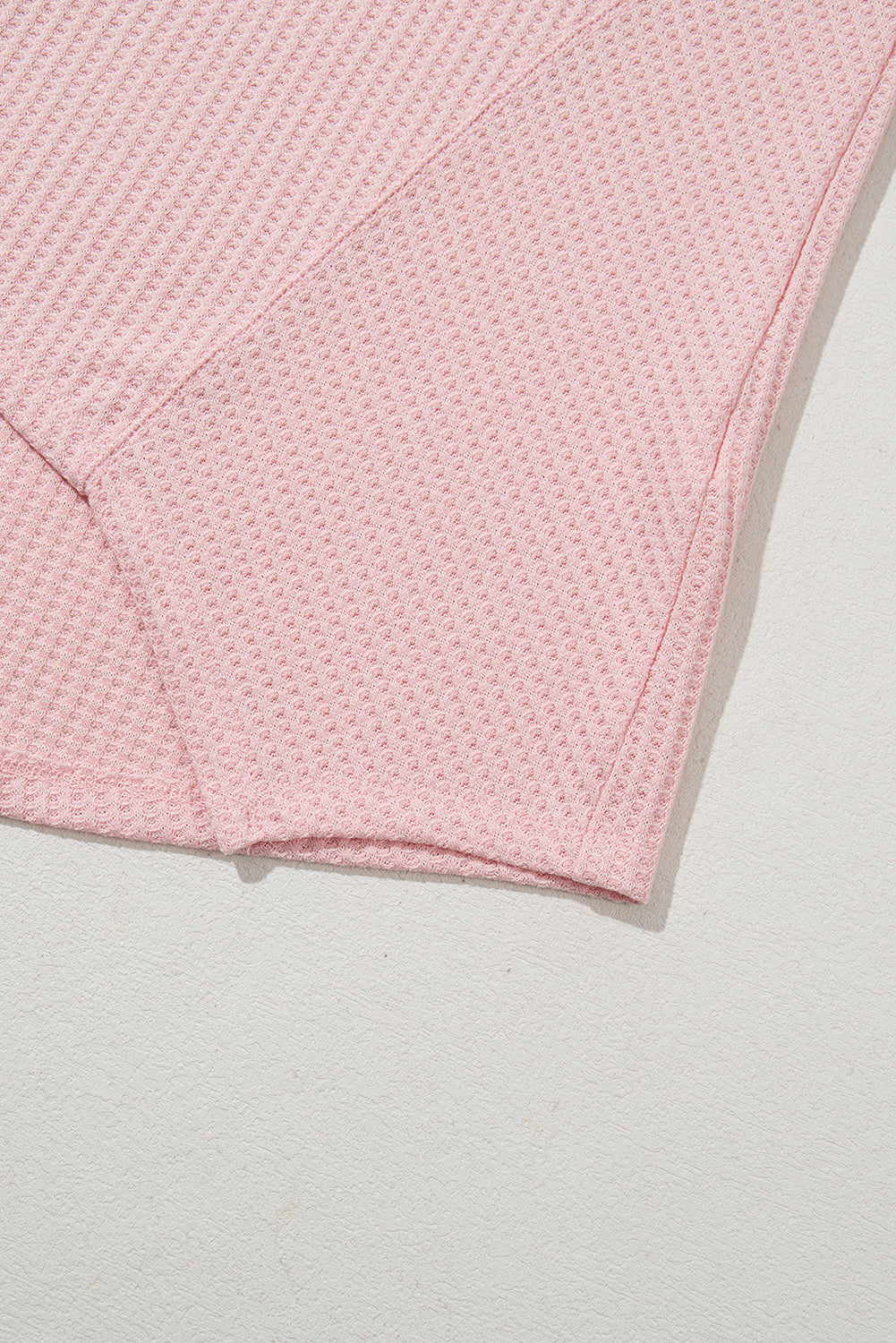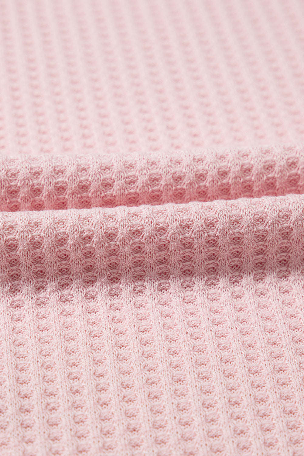 Light Pink Waffle V Neck Long Sleeve Drop Shoulder Loose Blouse