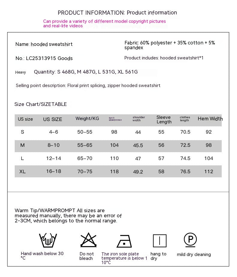 Loose Half Zipper Hooded Sweater Women's Stitching Floral Print Pullover