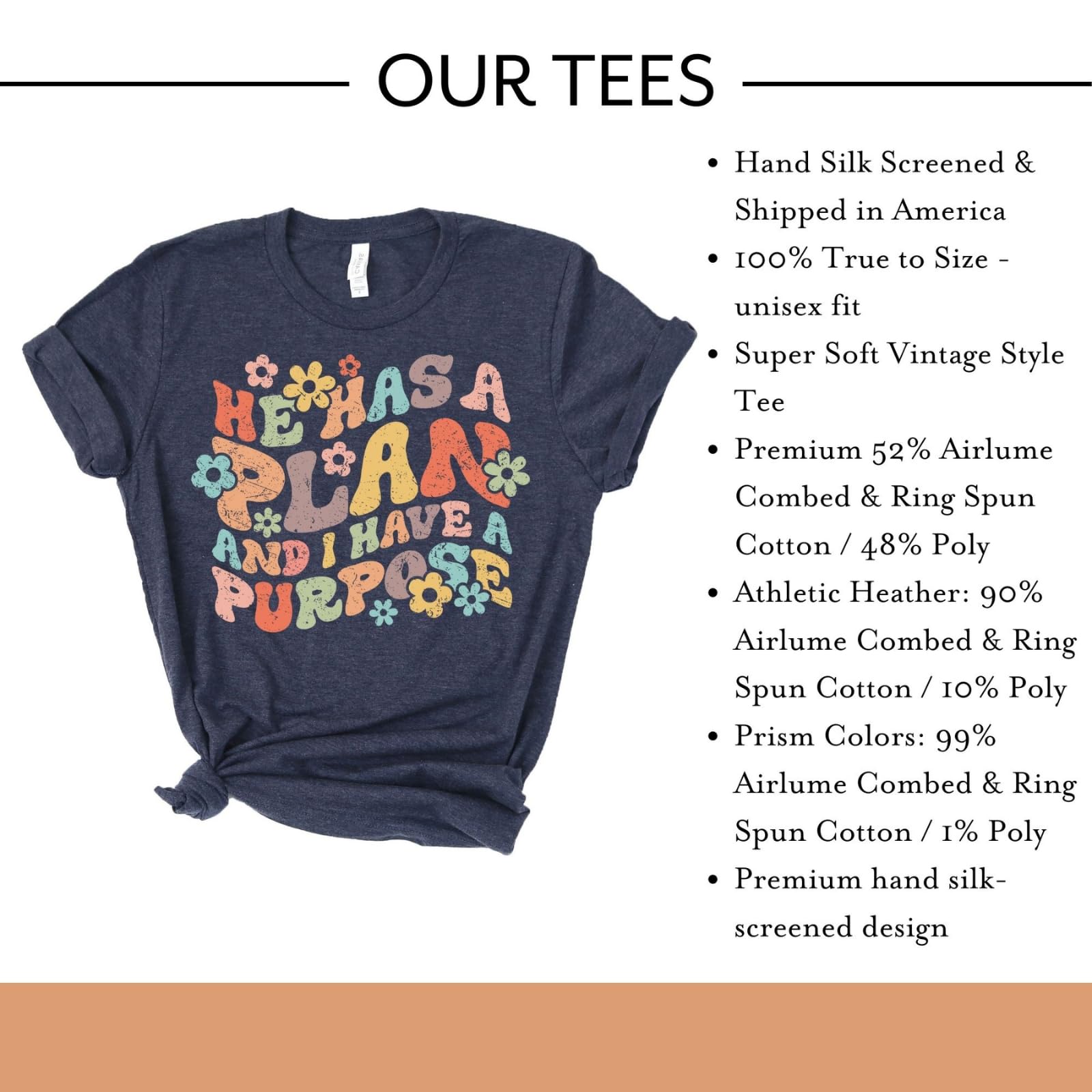 Love in Faith | He Has a Plan Short Sleeve | Graphic Print Christian Shirts | Faith-Based Apparel | Unisex (US, Alpha, Small, Regular, Regular, Heather Navy)