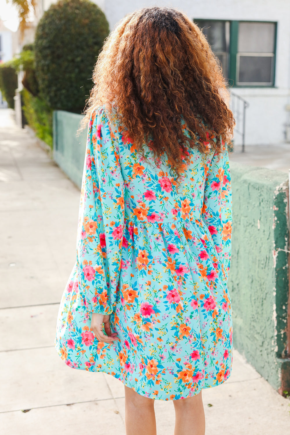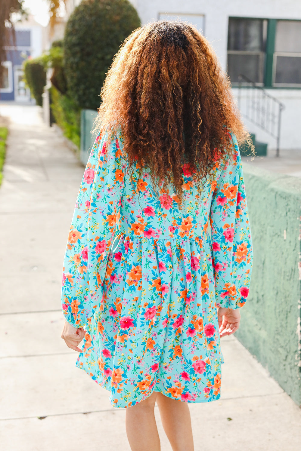 Feeling Femme Aqua Floral Ribbon Bow Tie Babydoll Dress