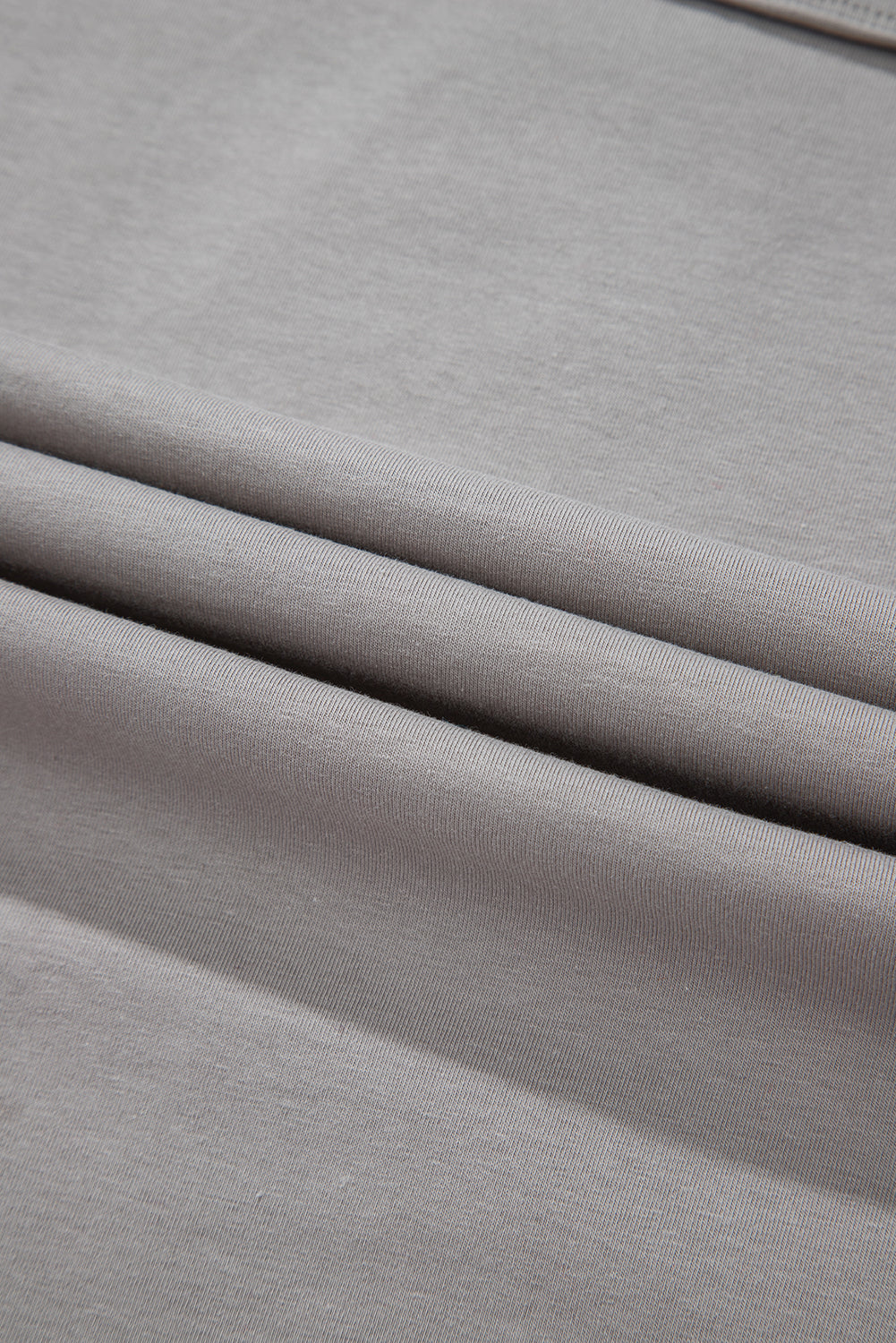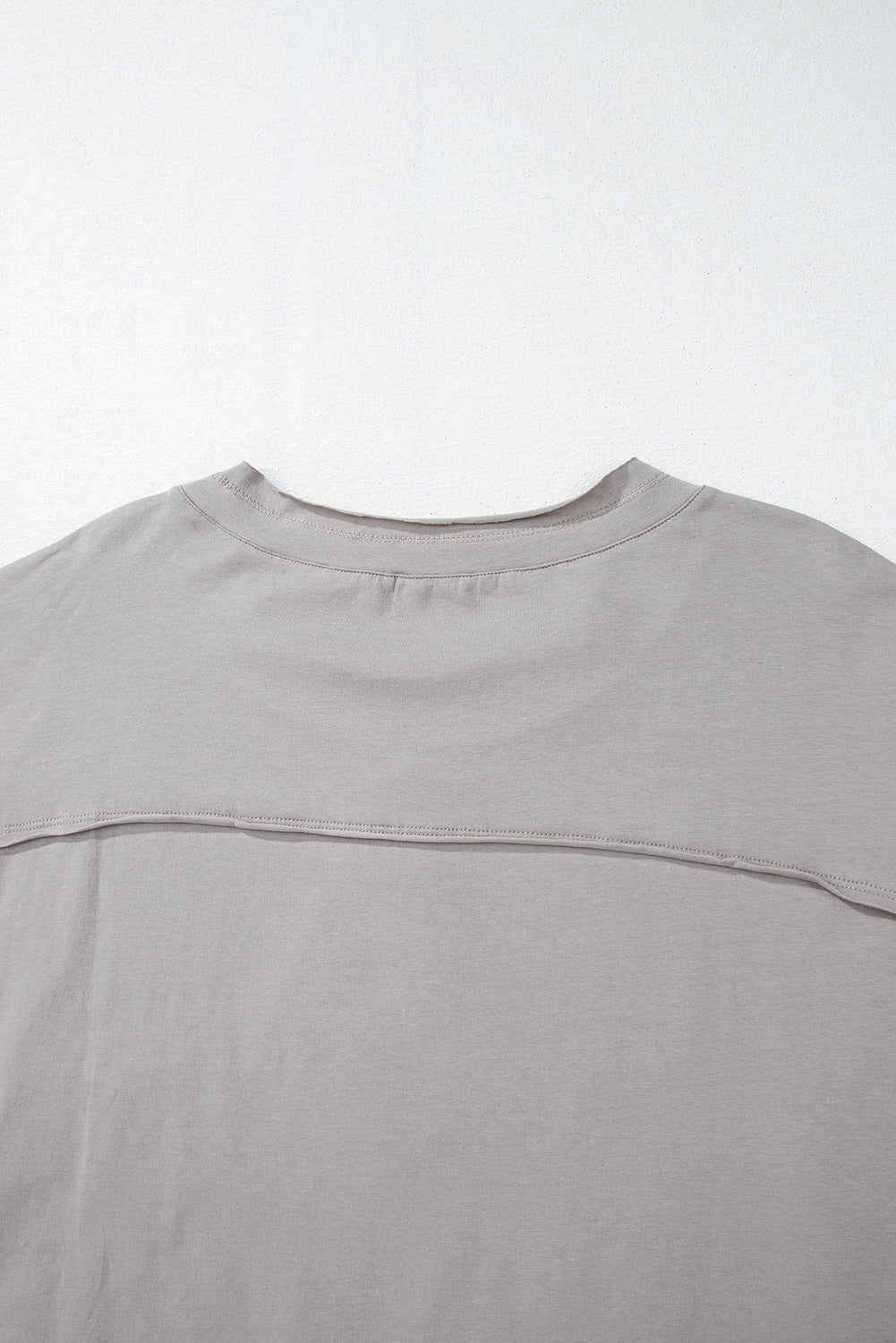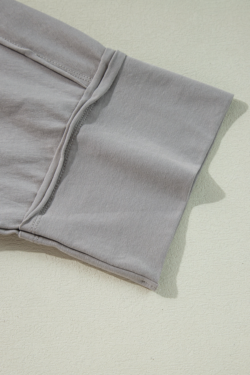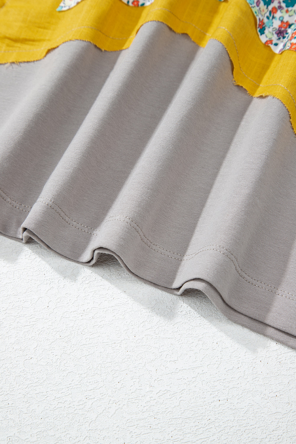 Medium Grey Floral Star Patched Pattern 3/4 Sleeve Plus Size Top