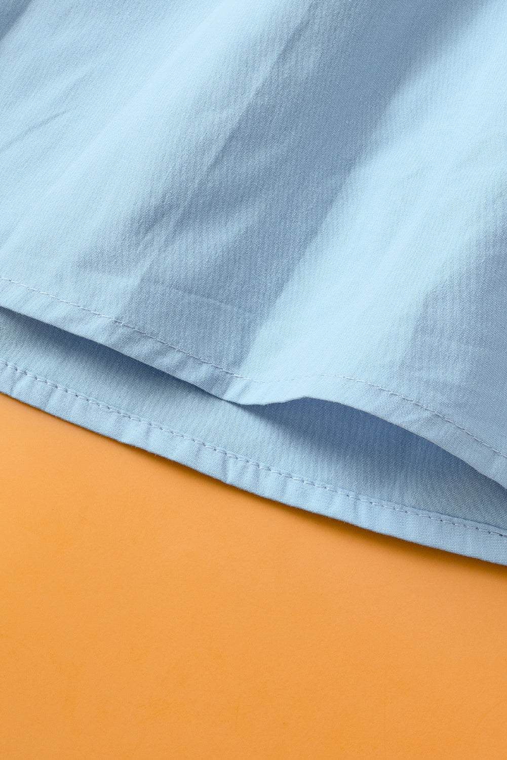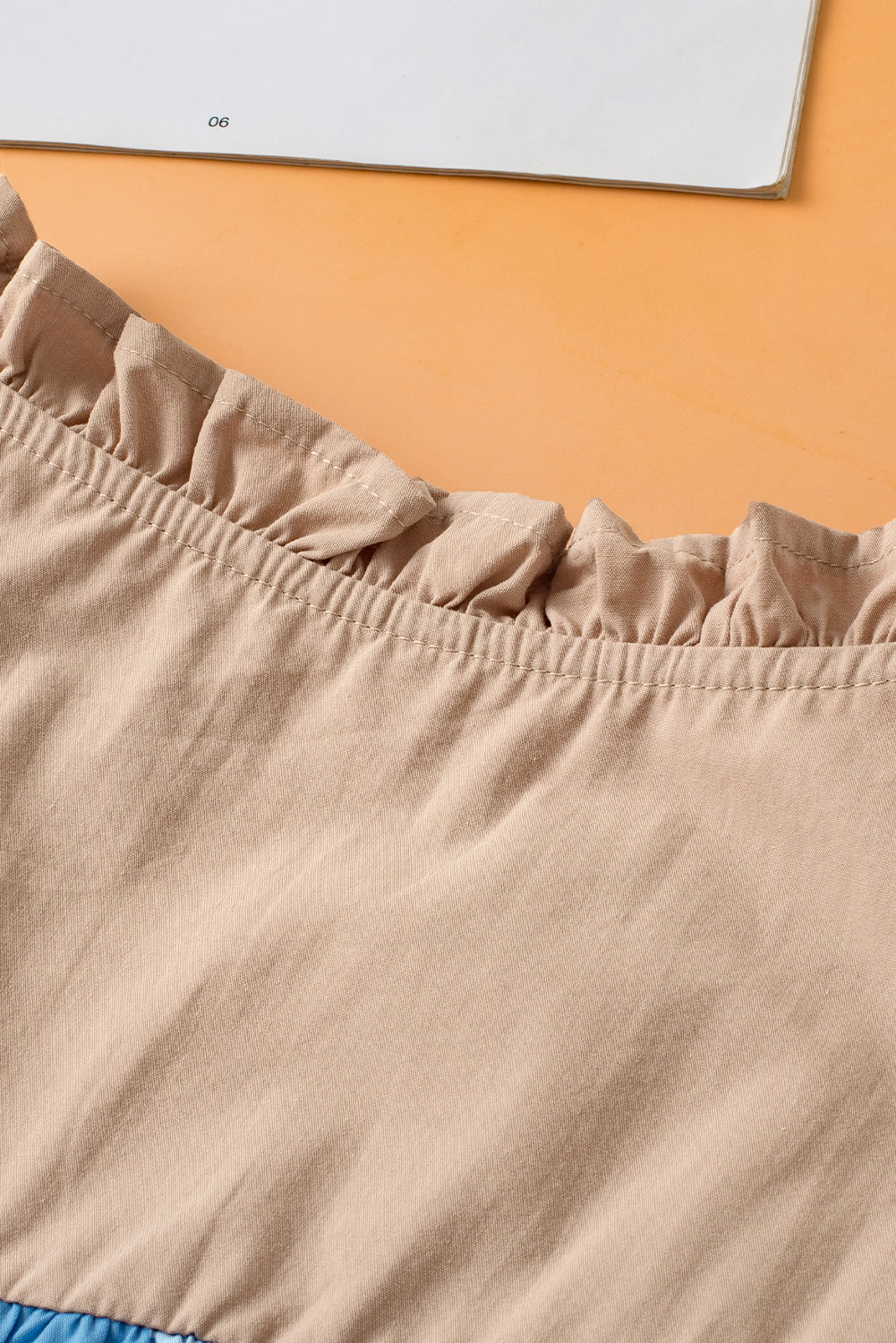 Mist Blue Colorblock Ruffled Sleeve Frill V Neck Blouse