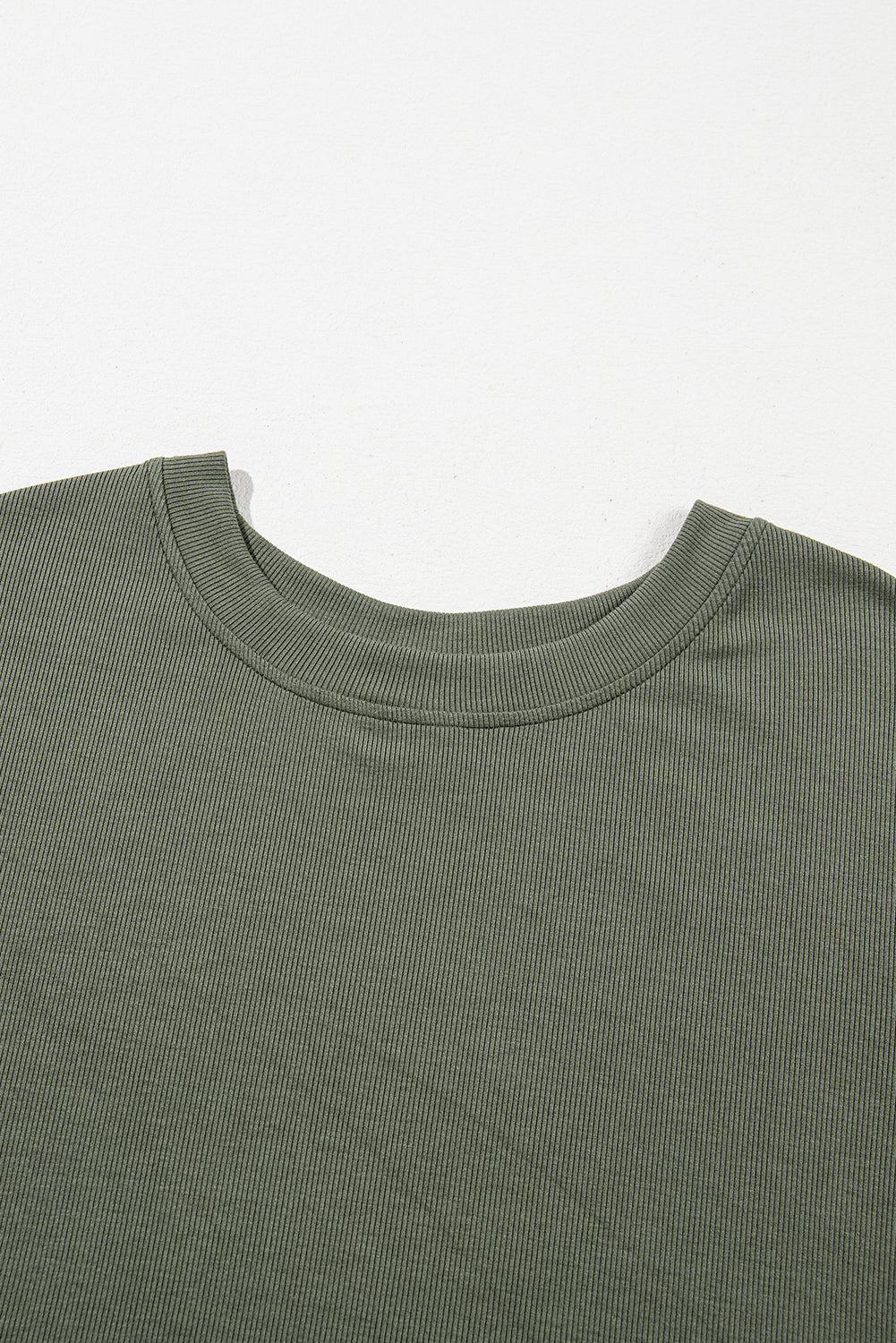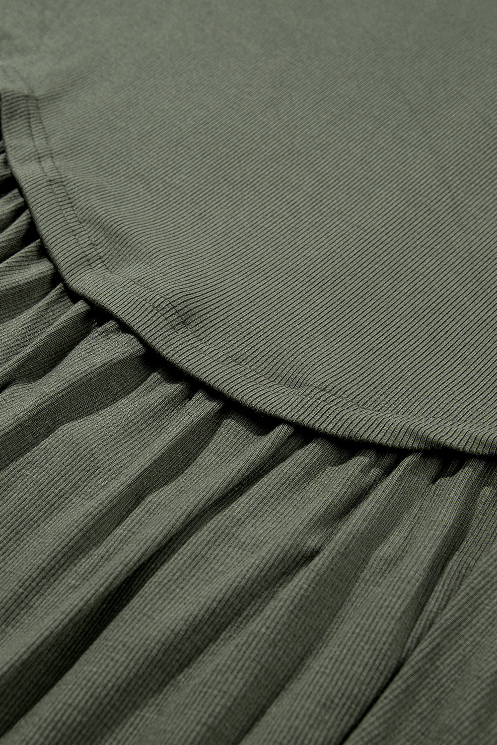 Mist Green Plus Size Thermal Knitted Babydoll Flare Top