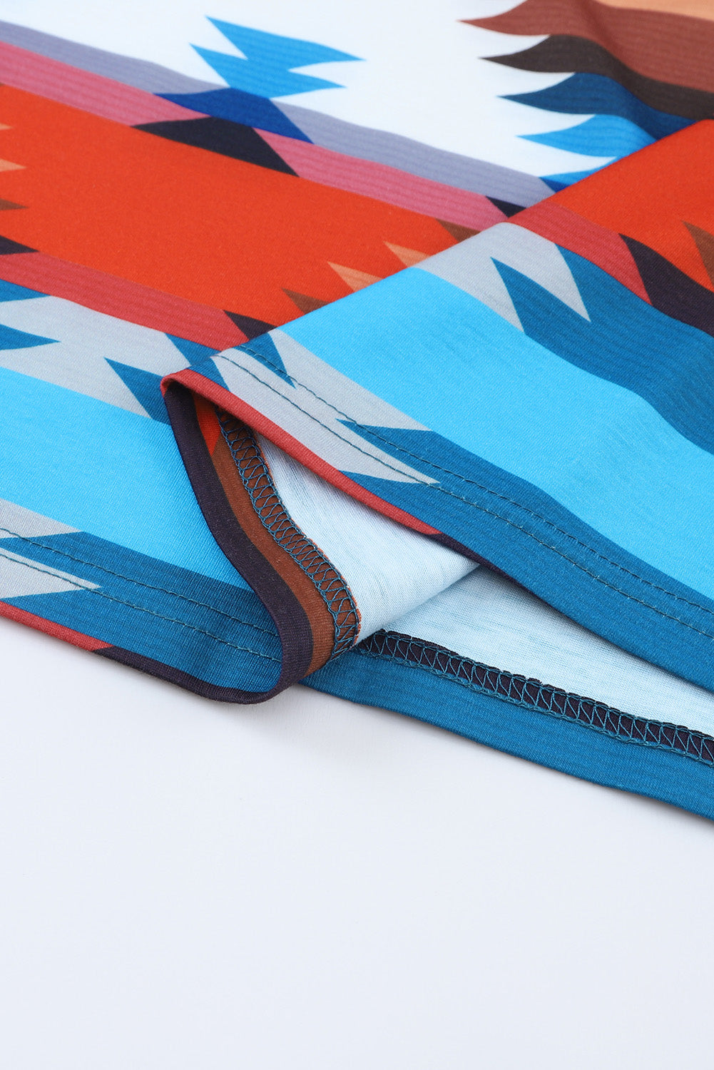 Multicolor Aztec Printed Casual Short Sleeve T-shirt