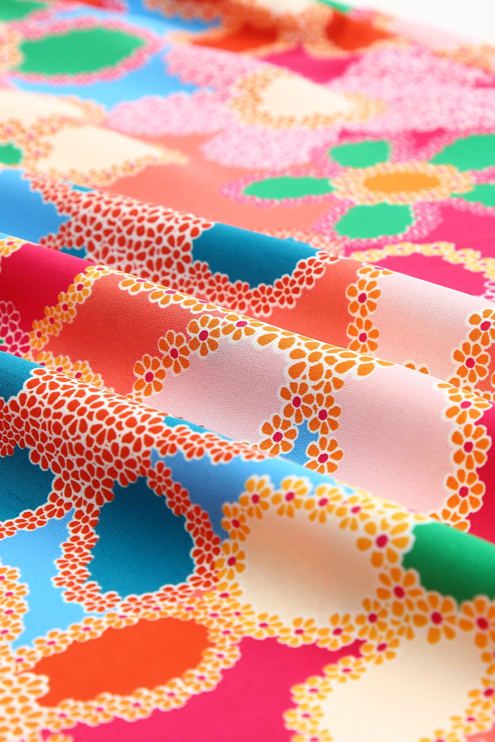 Multicolor Floral Print Smocked Square Neck Ruffles Blouse