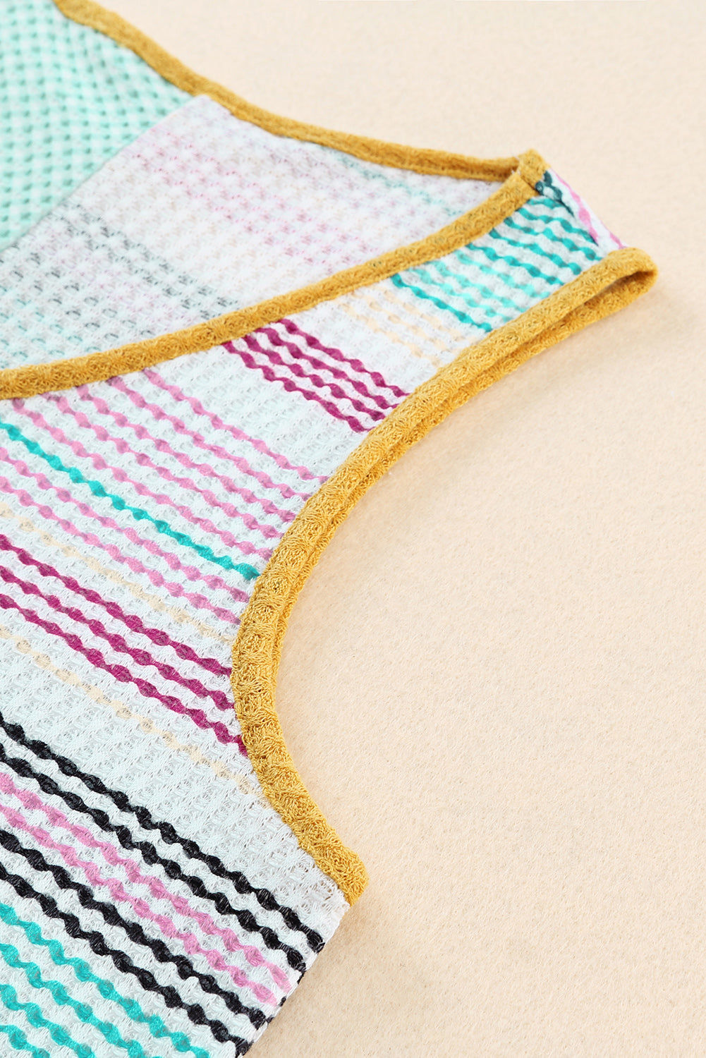 Multicolor Seamed Patchwork V Neck Plus Size Sleeveless Top
