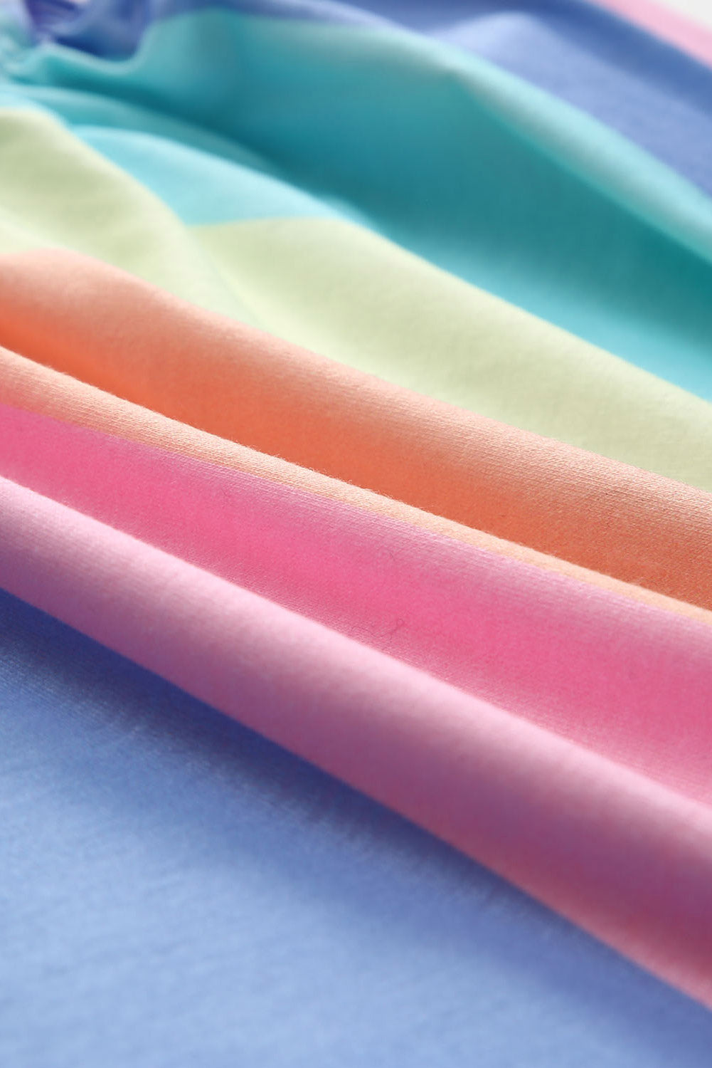 Multicolor Striped Print High Waist Short Sleeve Romper with Pockets