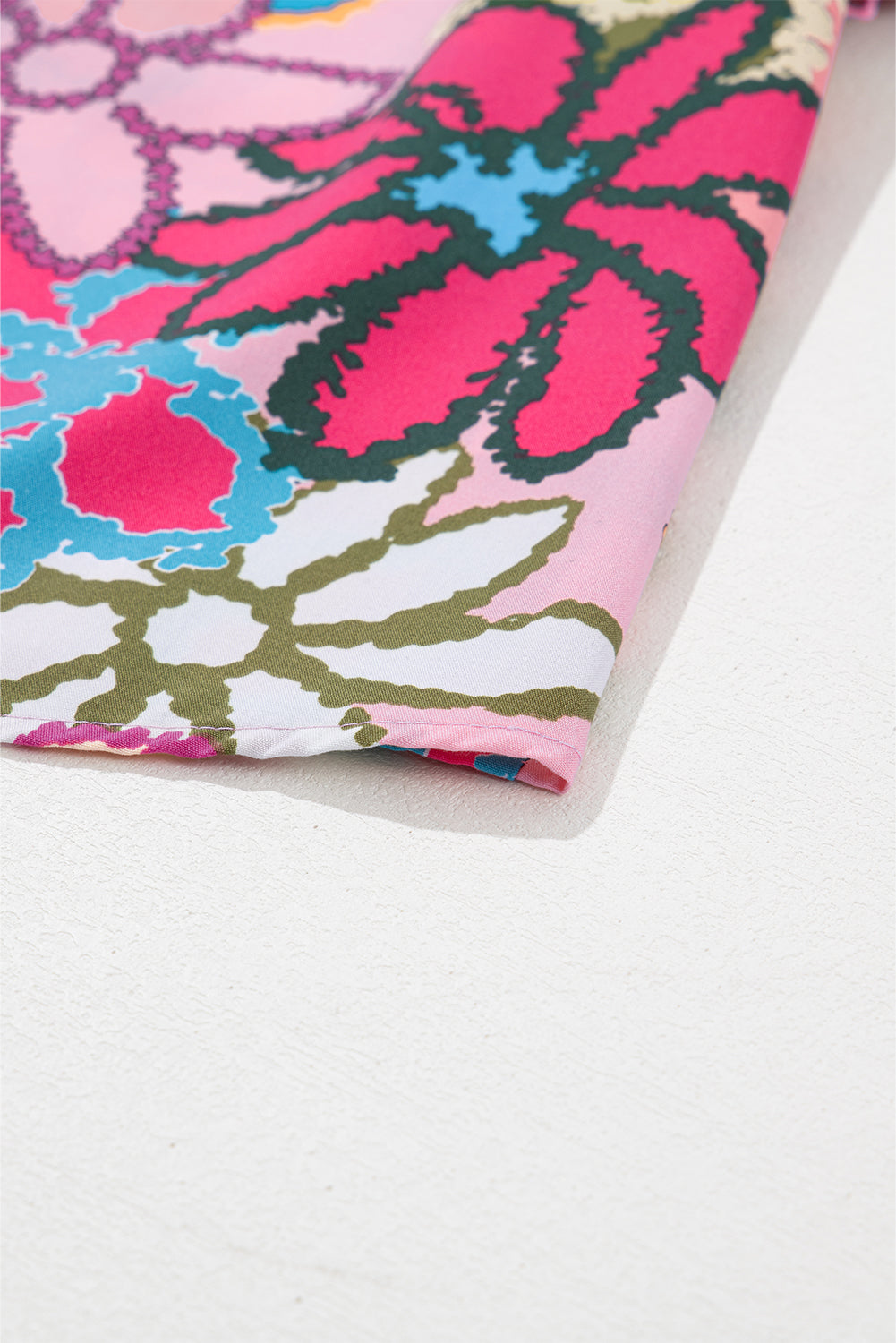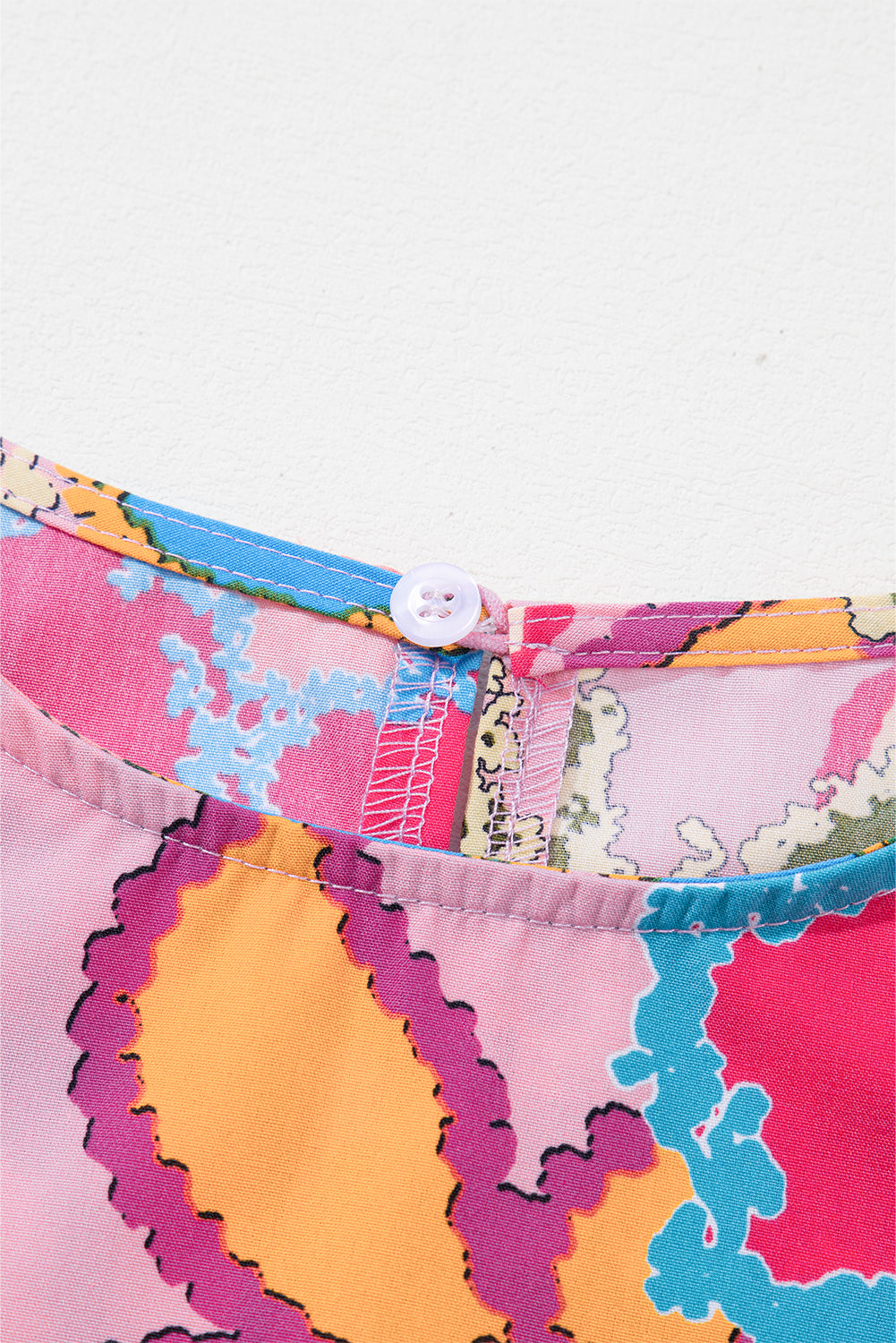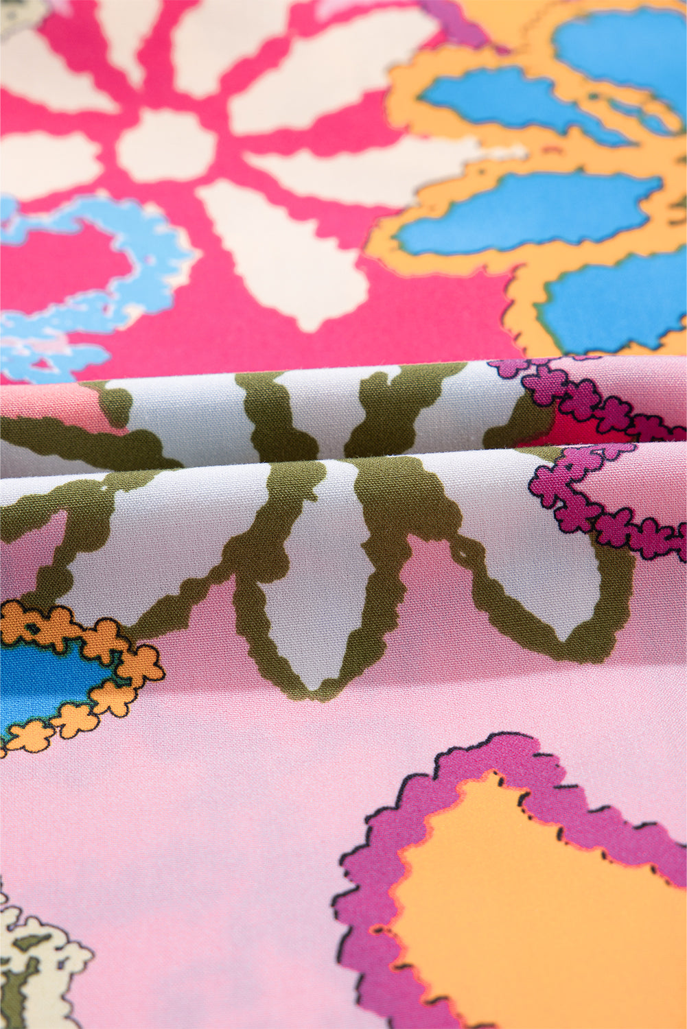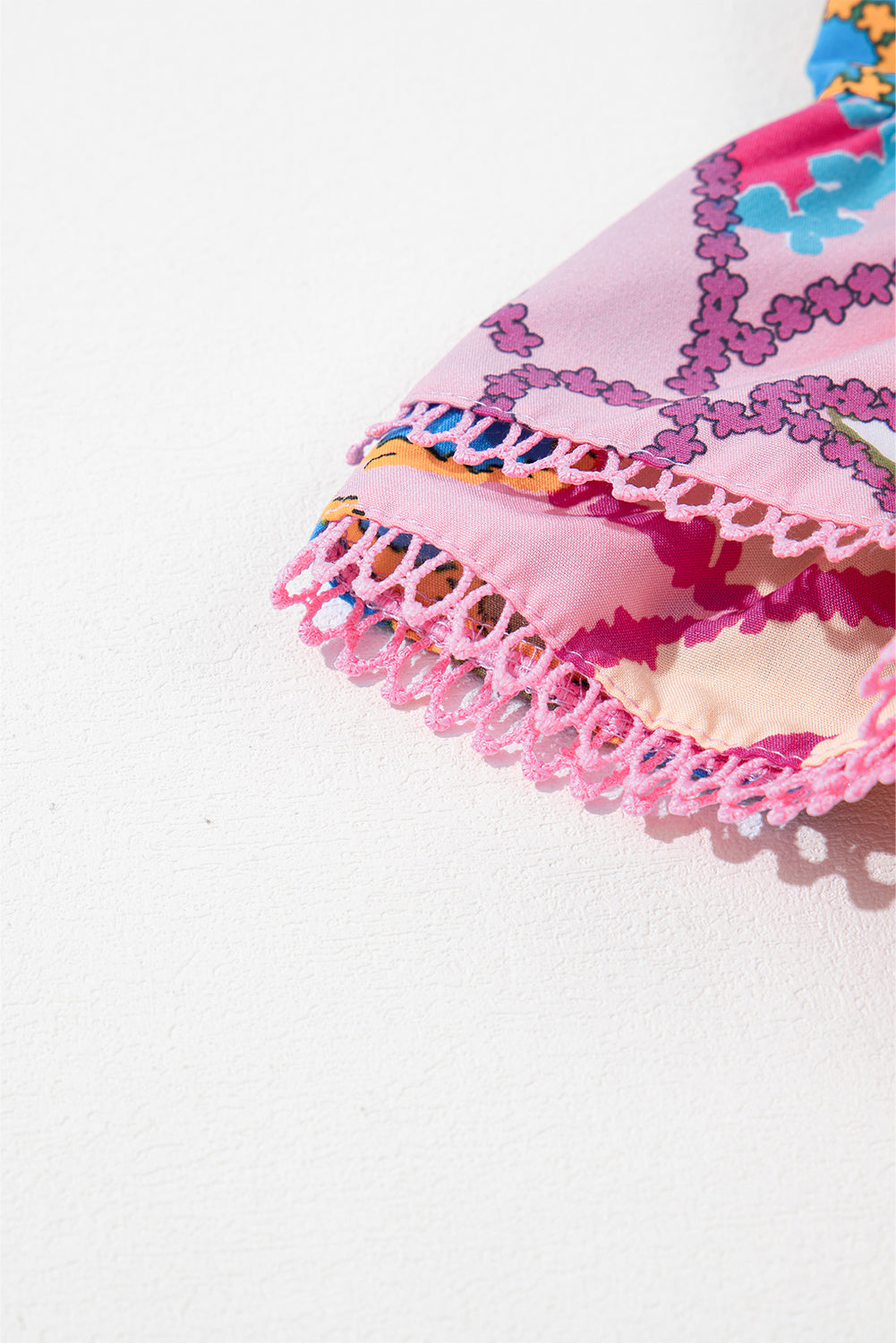 Multicolor Vibrant Floral Print Trimmed Ruffle Sleeve Blouse