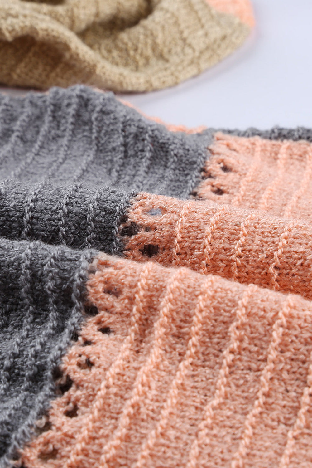 Multicolor Zipped Front Colorblock Hollow-out Knit Hoodie