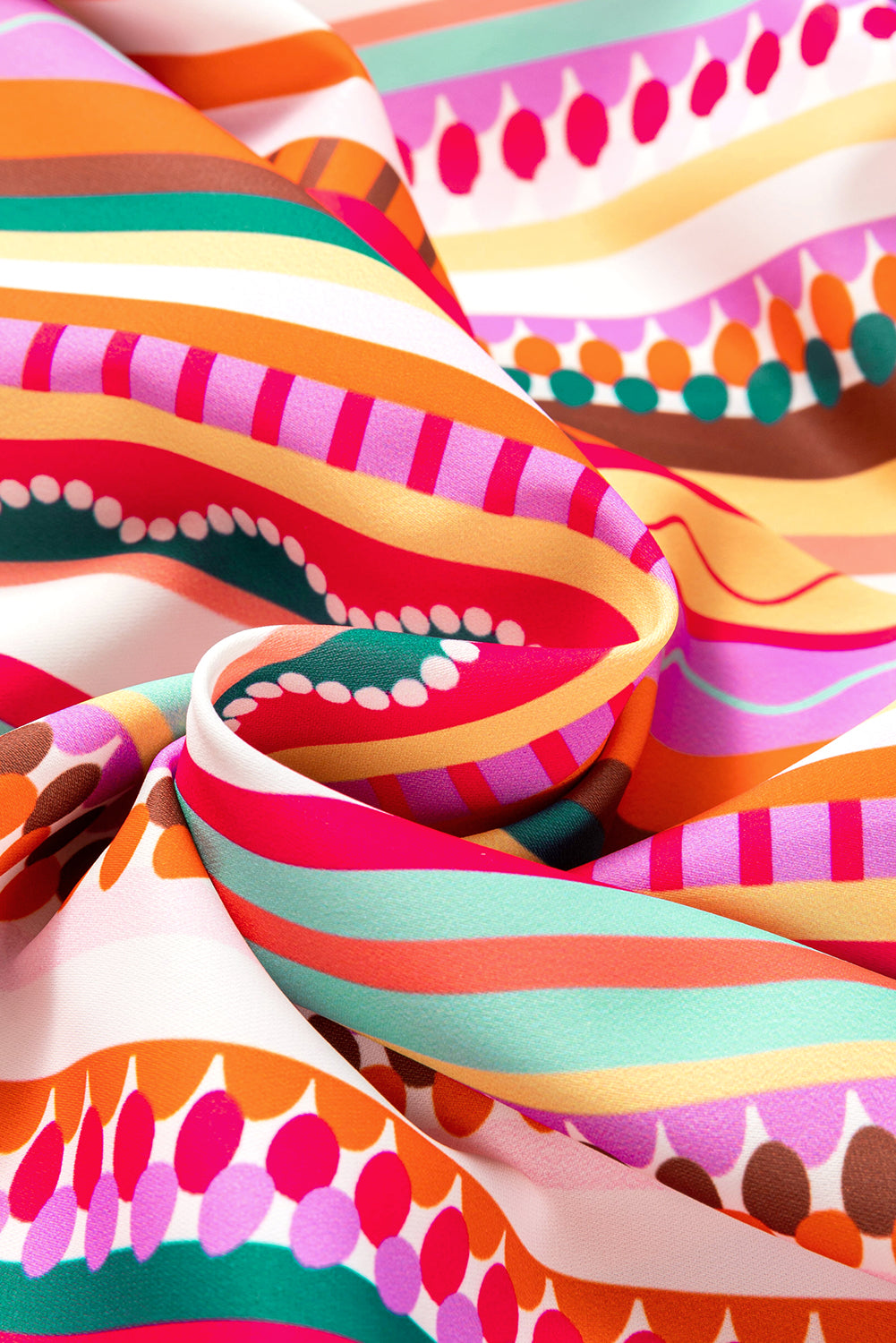 This long dress is full of bohemian touch with a multicolor striped silhouette