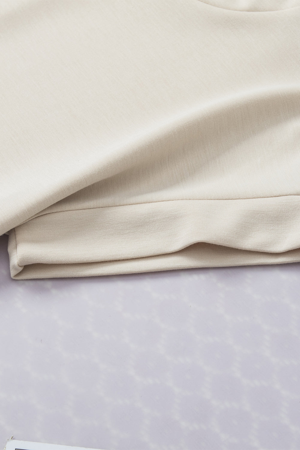 Oatmeal Plain Crew Neck Loose Fit Casual Top