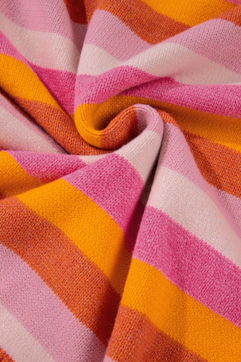 Orange Color Block Ribbed Edge Round Neck Sweater