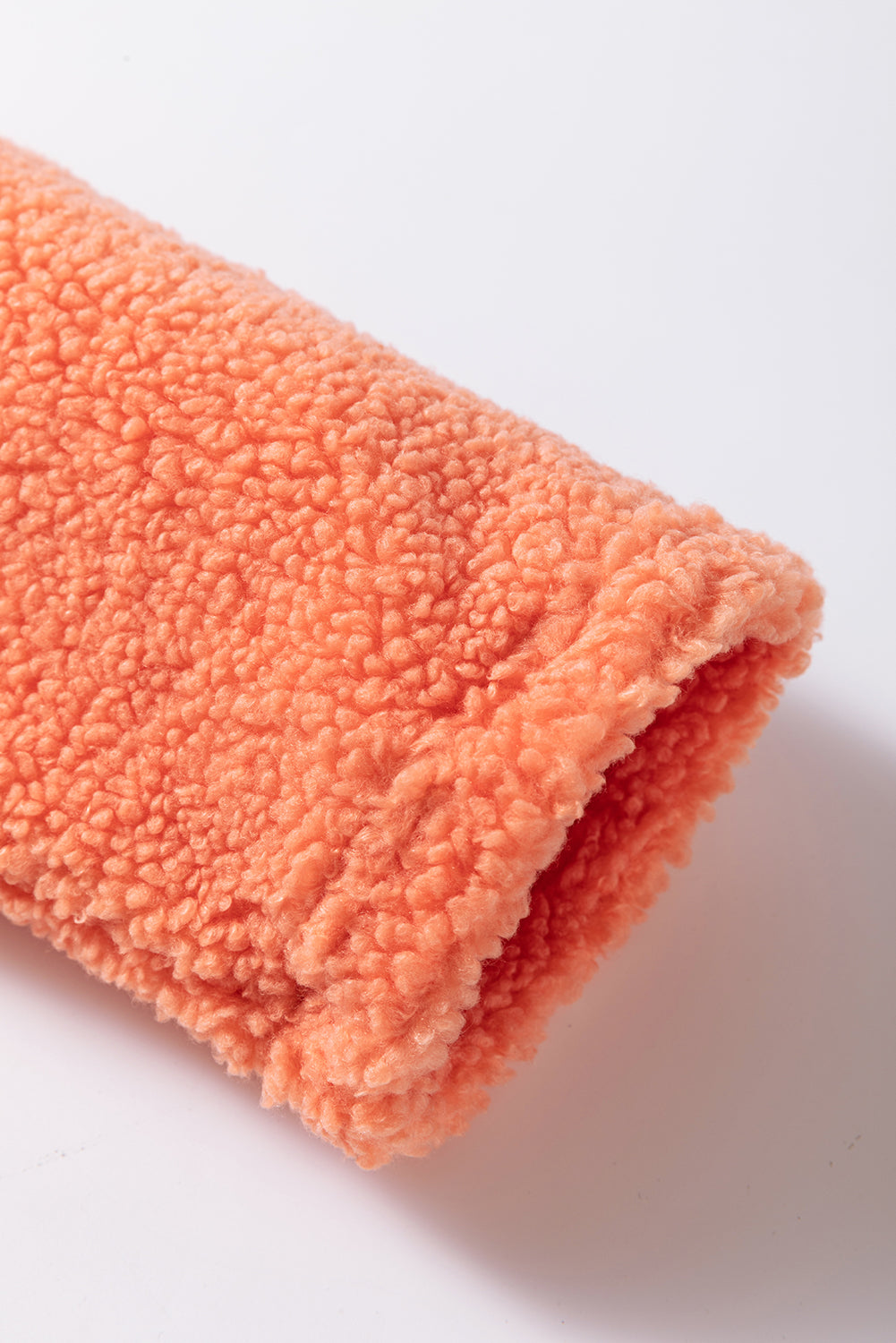 Orange Colorblock Half Zipper Stand Neck Sherpa Sweatshirt