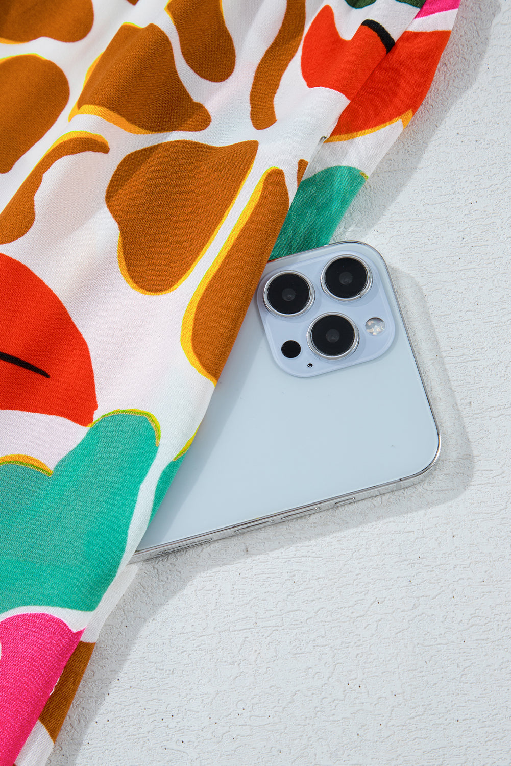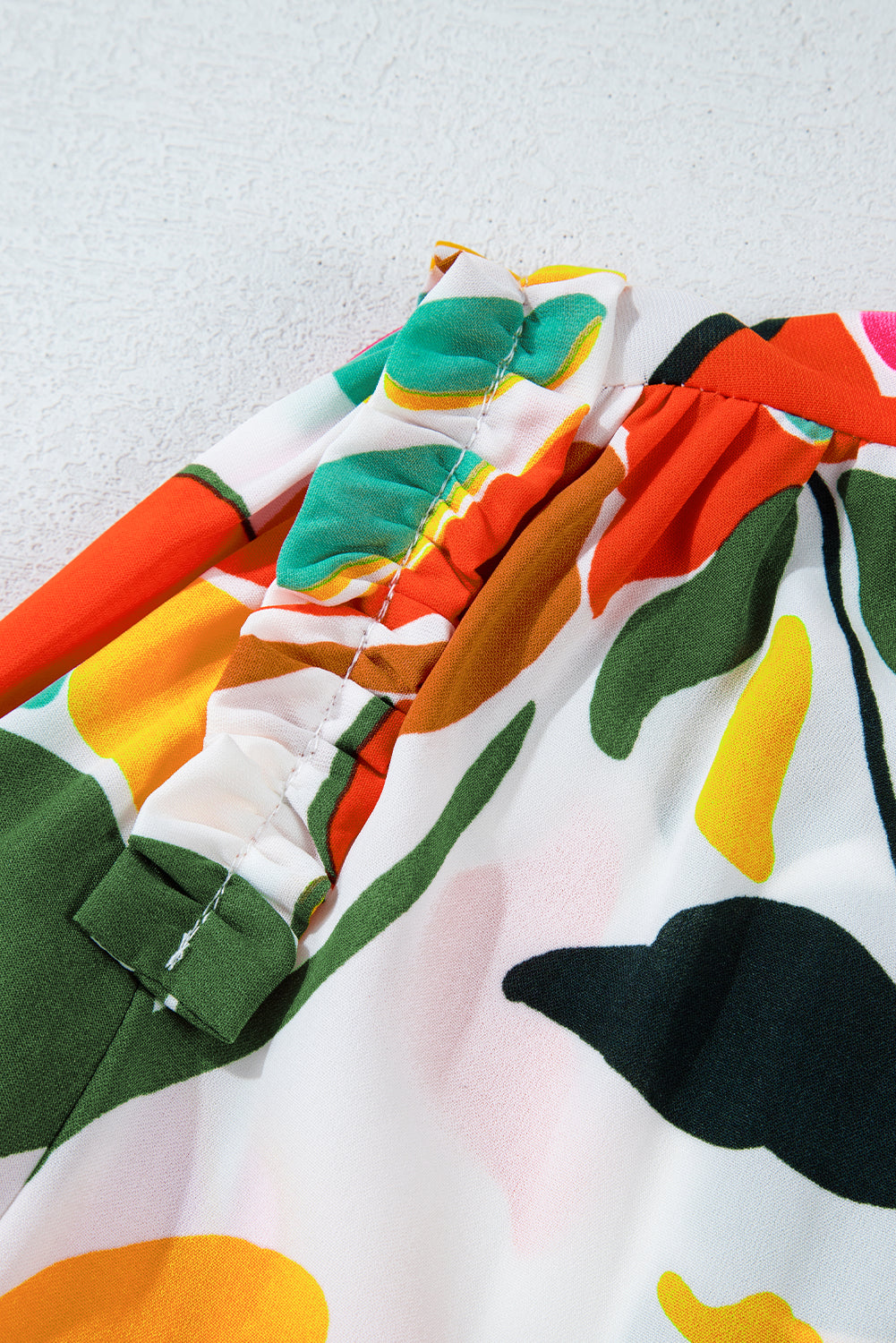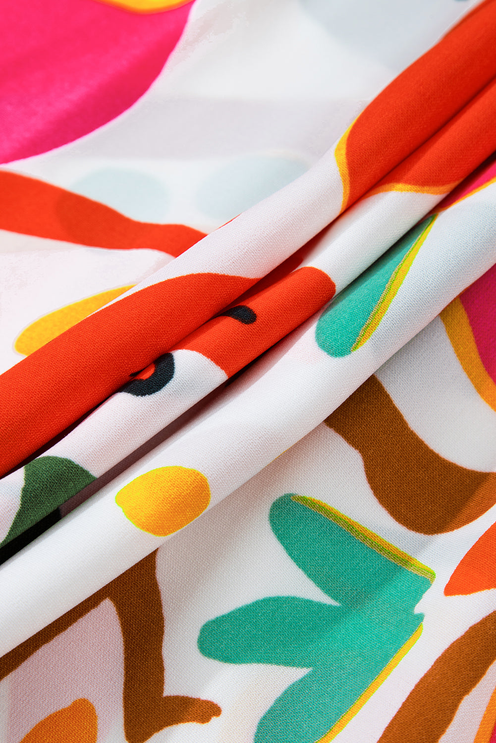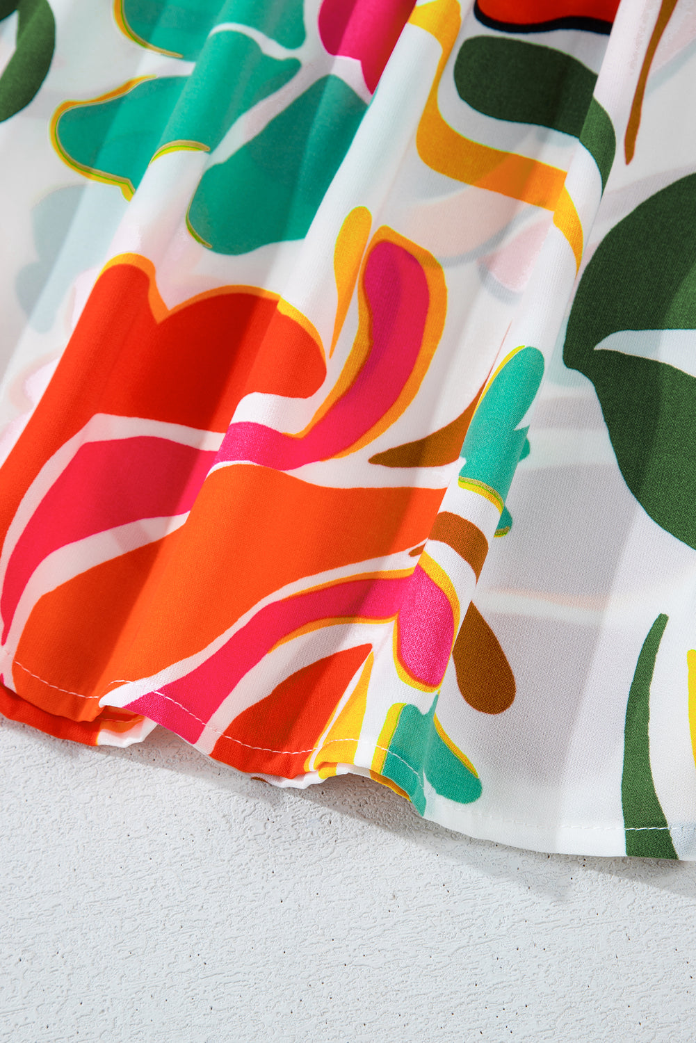 Orange Floral Print Drawstring V Neck Tiered Plus Size Dress