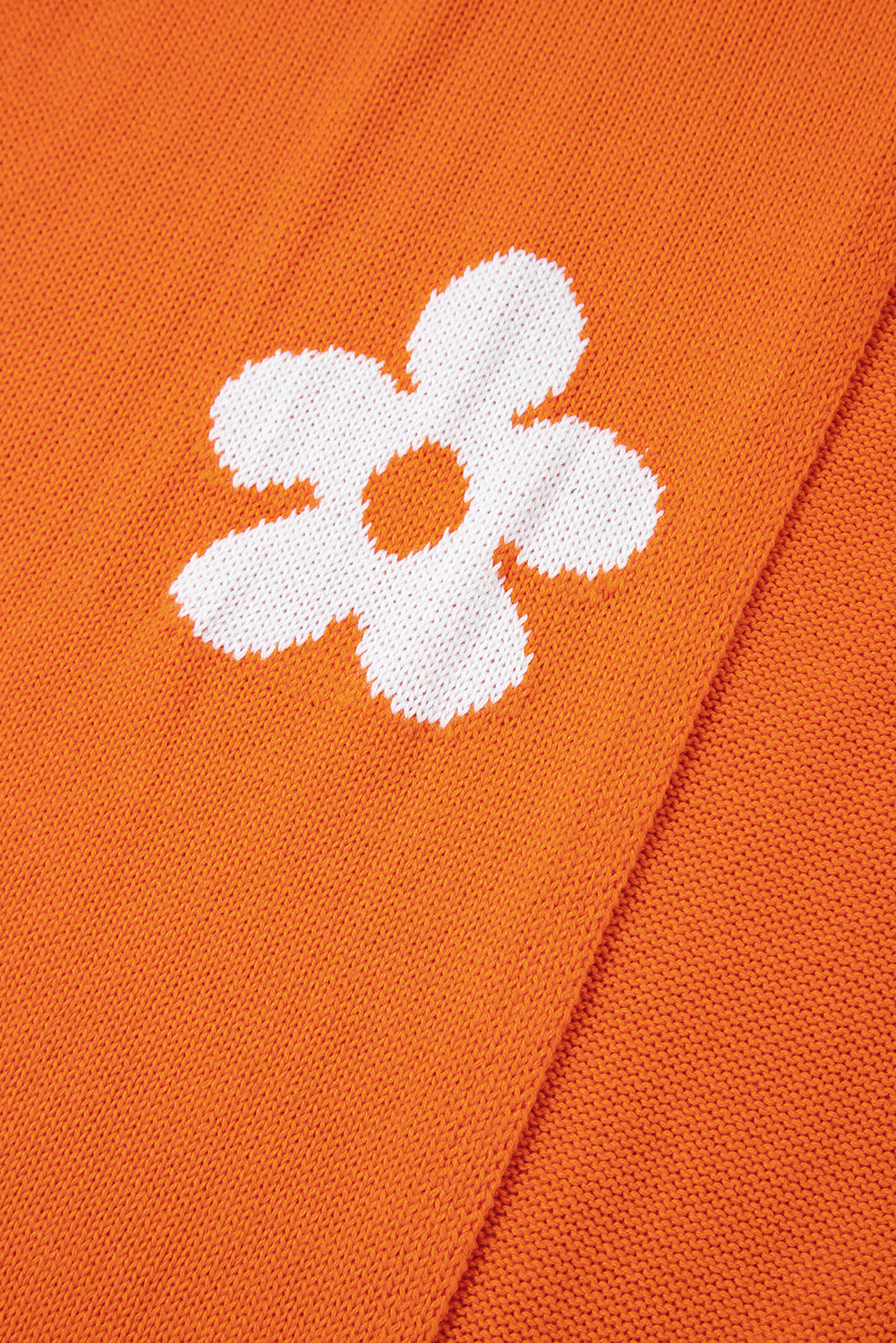 Orange Flower Pattern Drop Shoulder Plus Size Cardigan