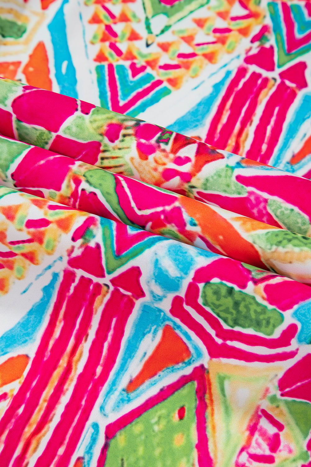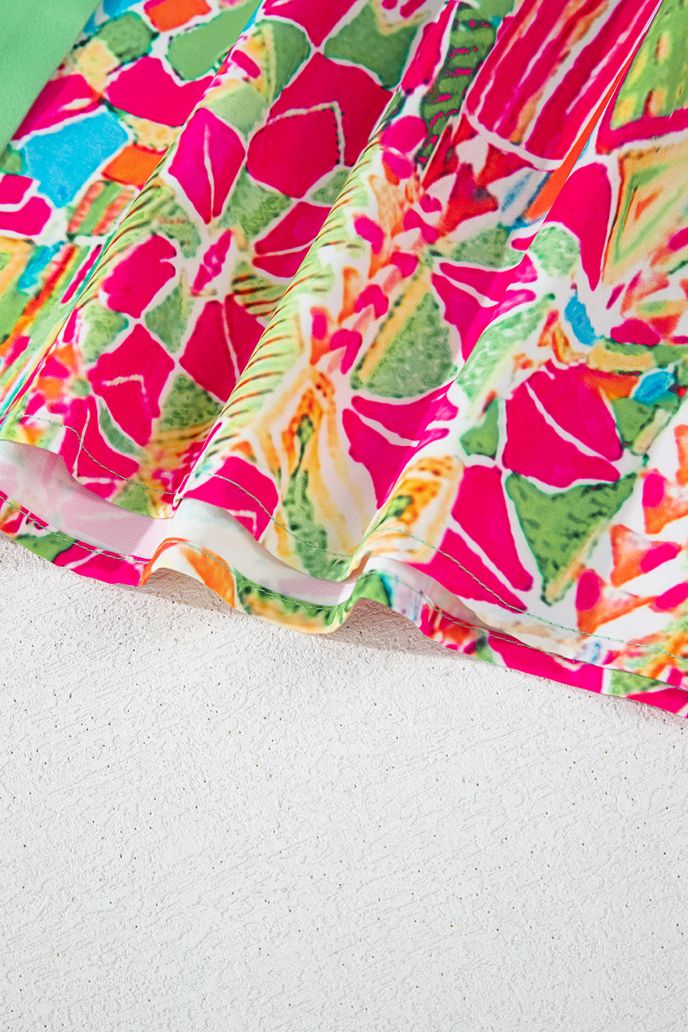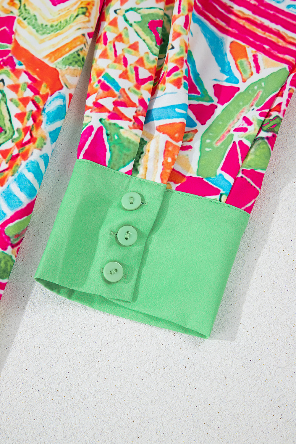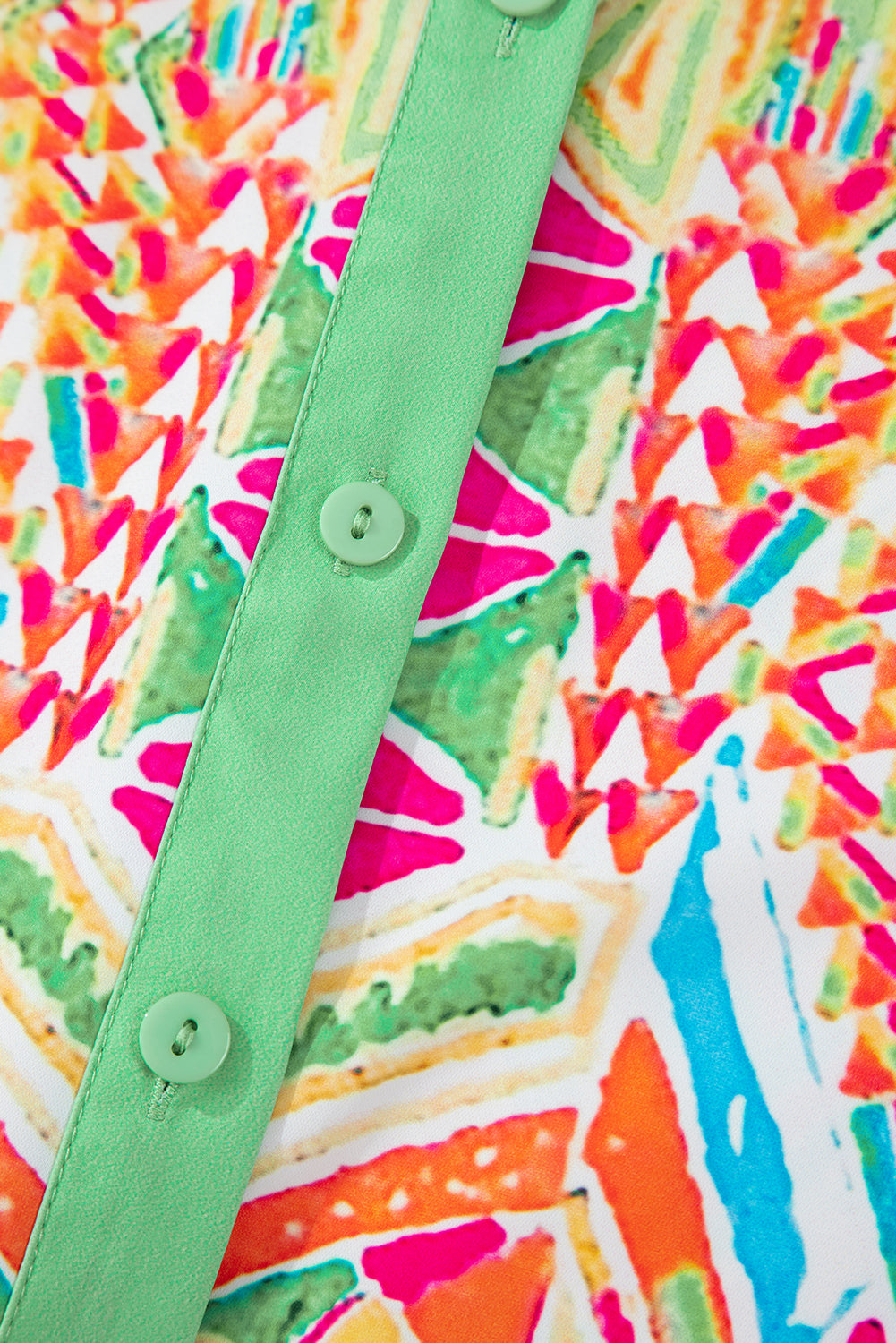 Orange Western Geometric Print Cuffed Shift Shirt Dress