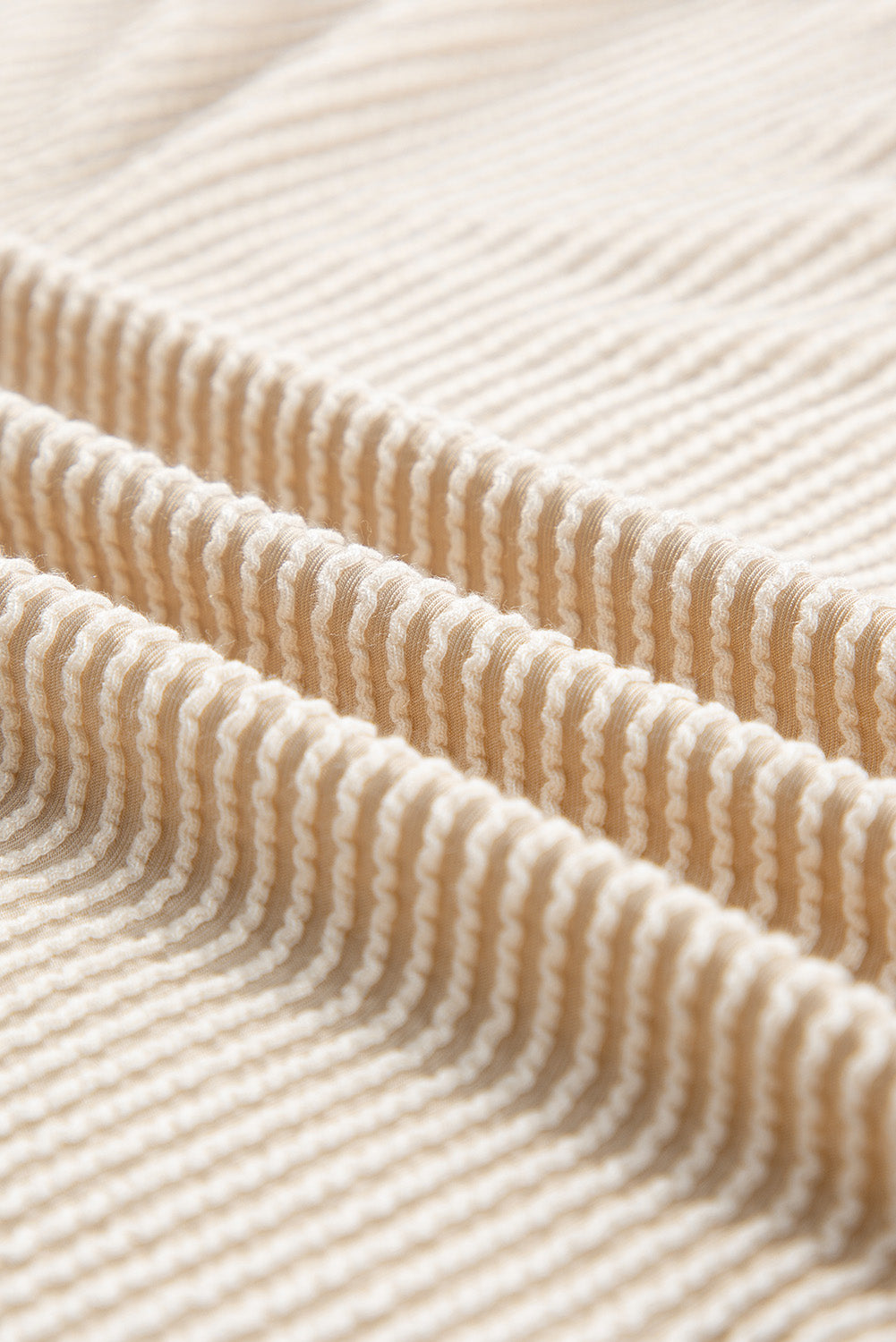 Parchment Corded Knit Long Sleeve Top and High Waist Shorts Set