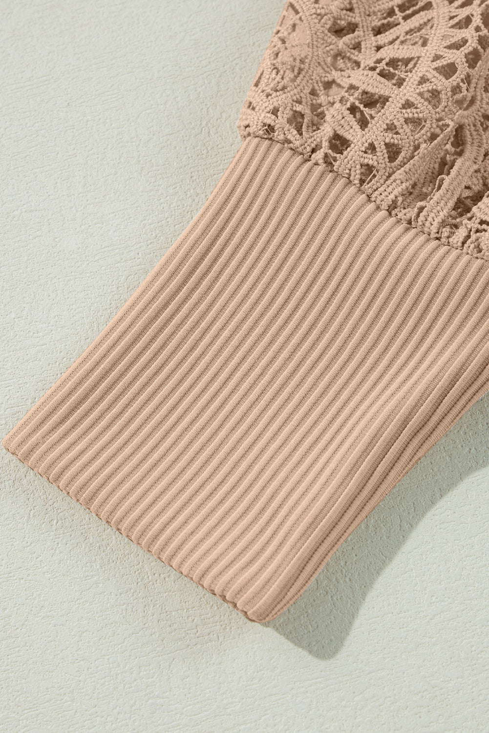 Parchment Lace Patchwork Ribbed Knit Open Front Duster Cardigan