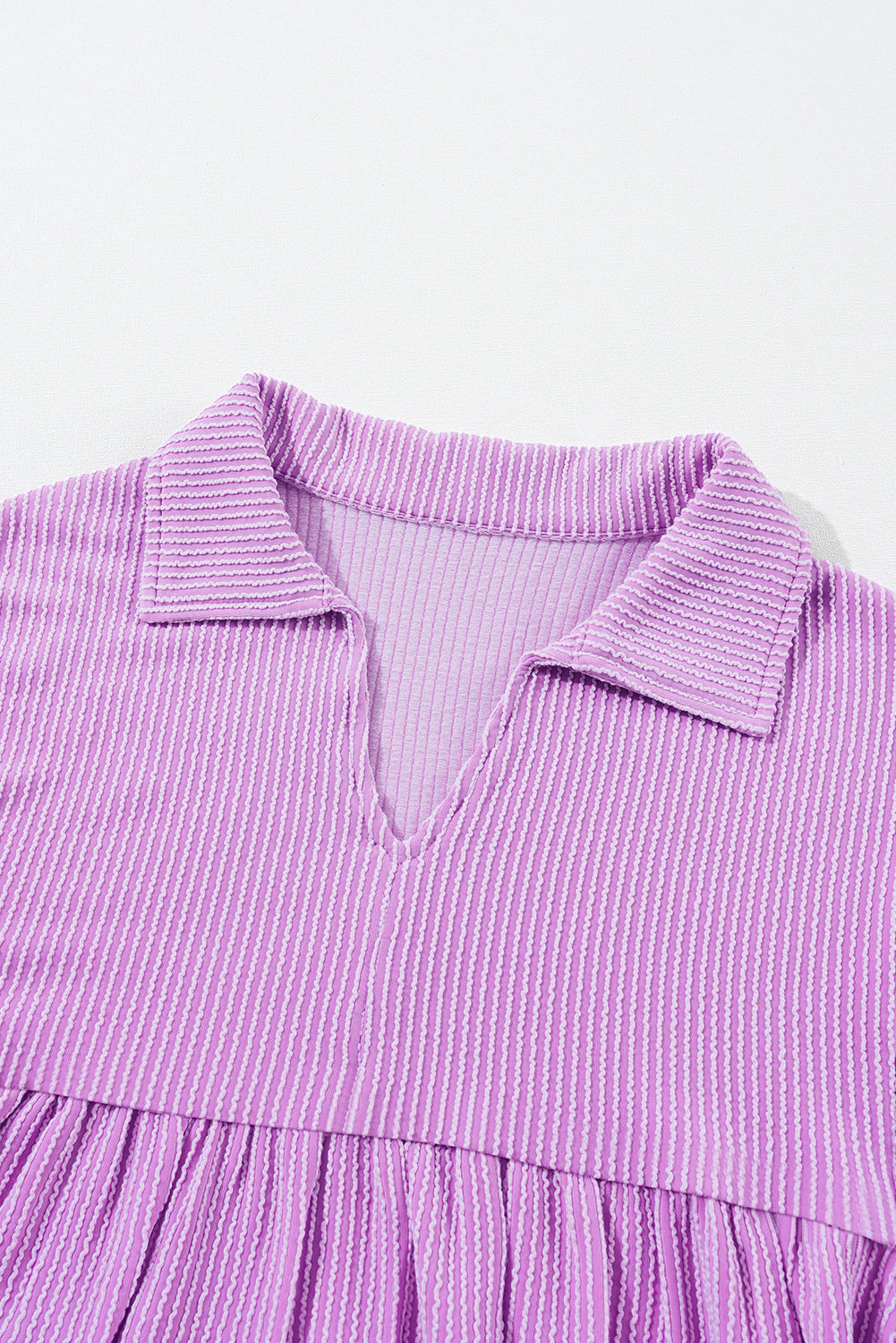Phalaenopsis Corded Turn-down V Neck Bubble Sleeve Babydoll Blouse