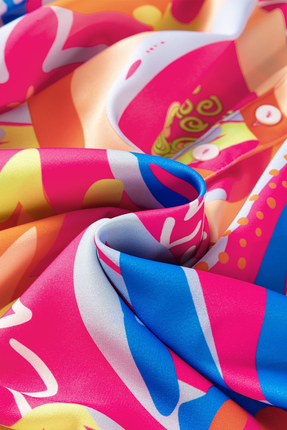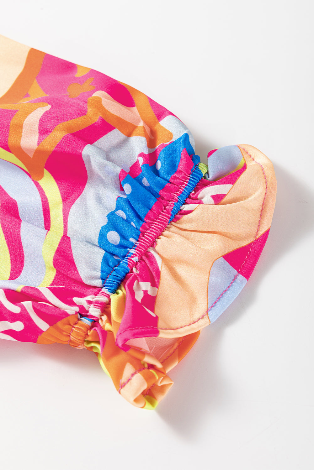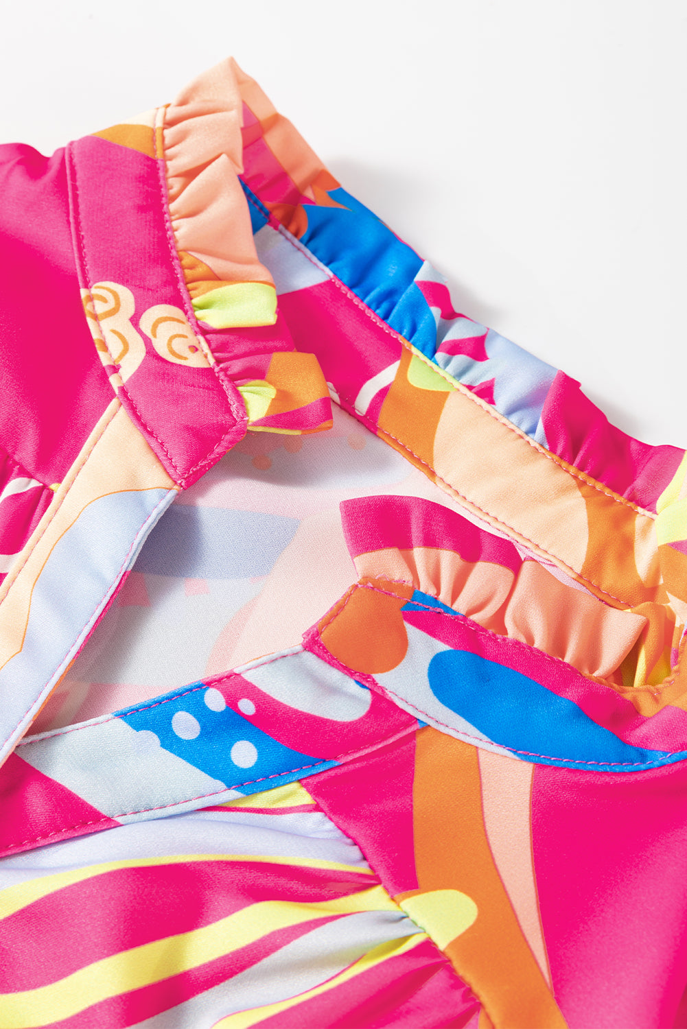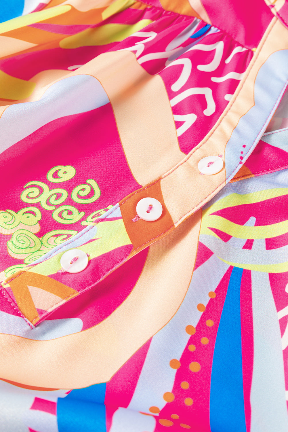 Pink Abstract Print Ruffled Sleeve Buttoned V Neck Blouse