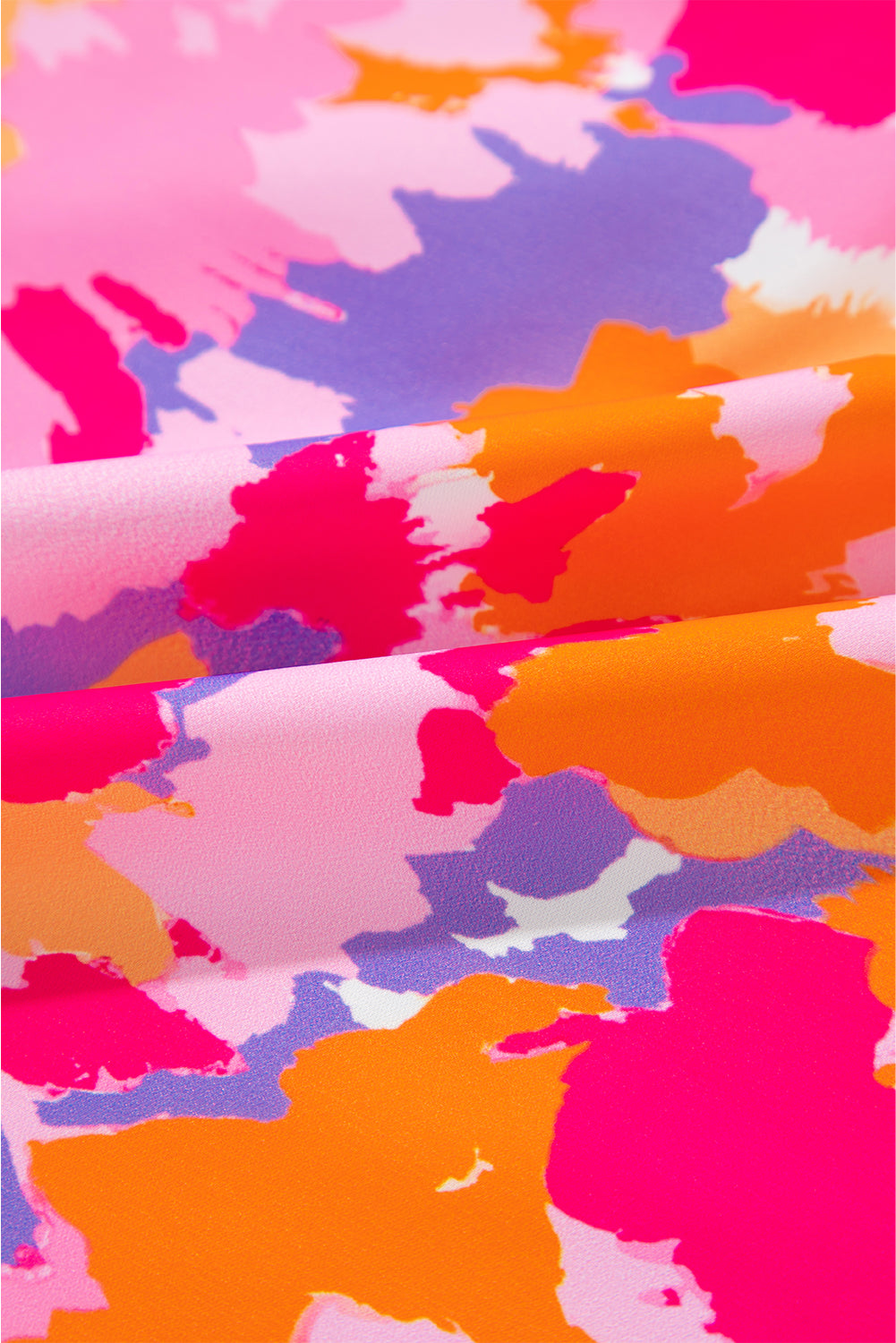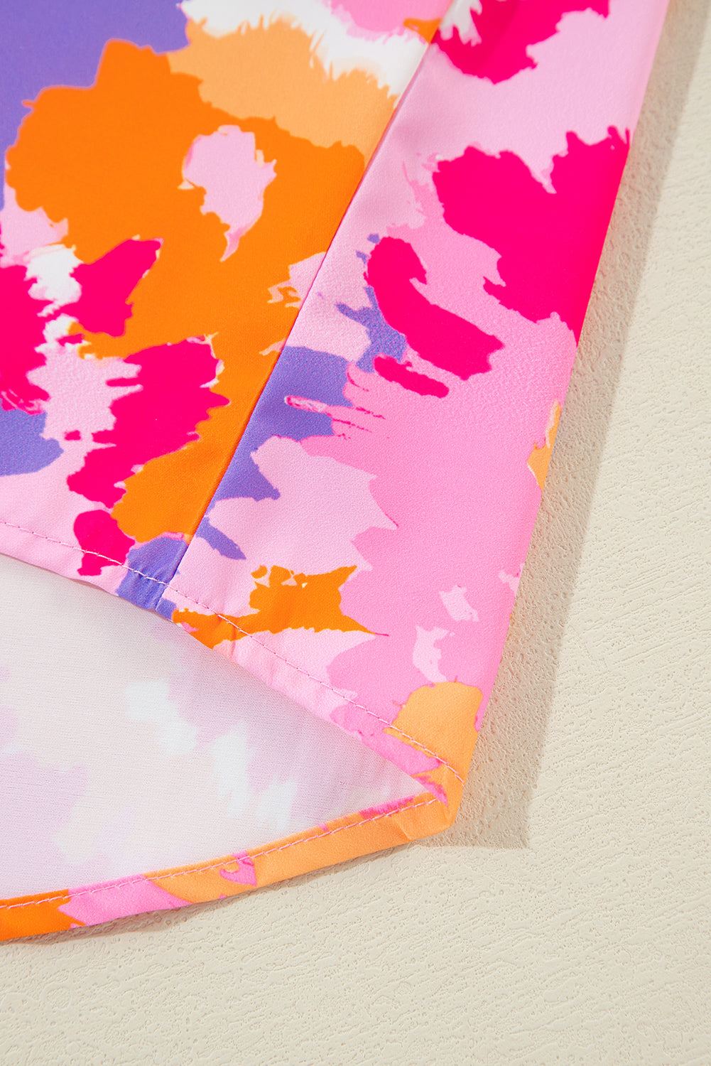Pink Abstract Print Tab Sleeve Notched Neck Blouse