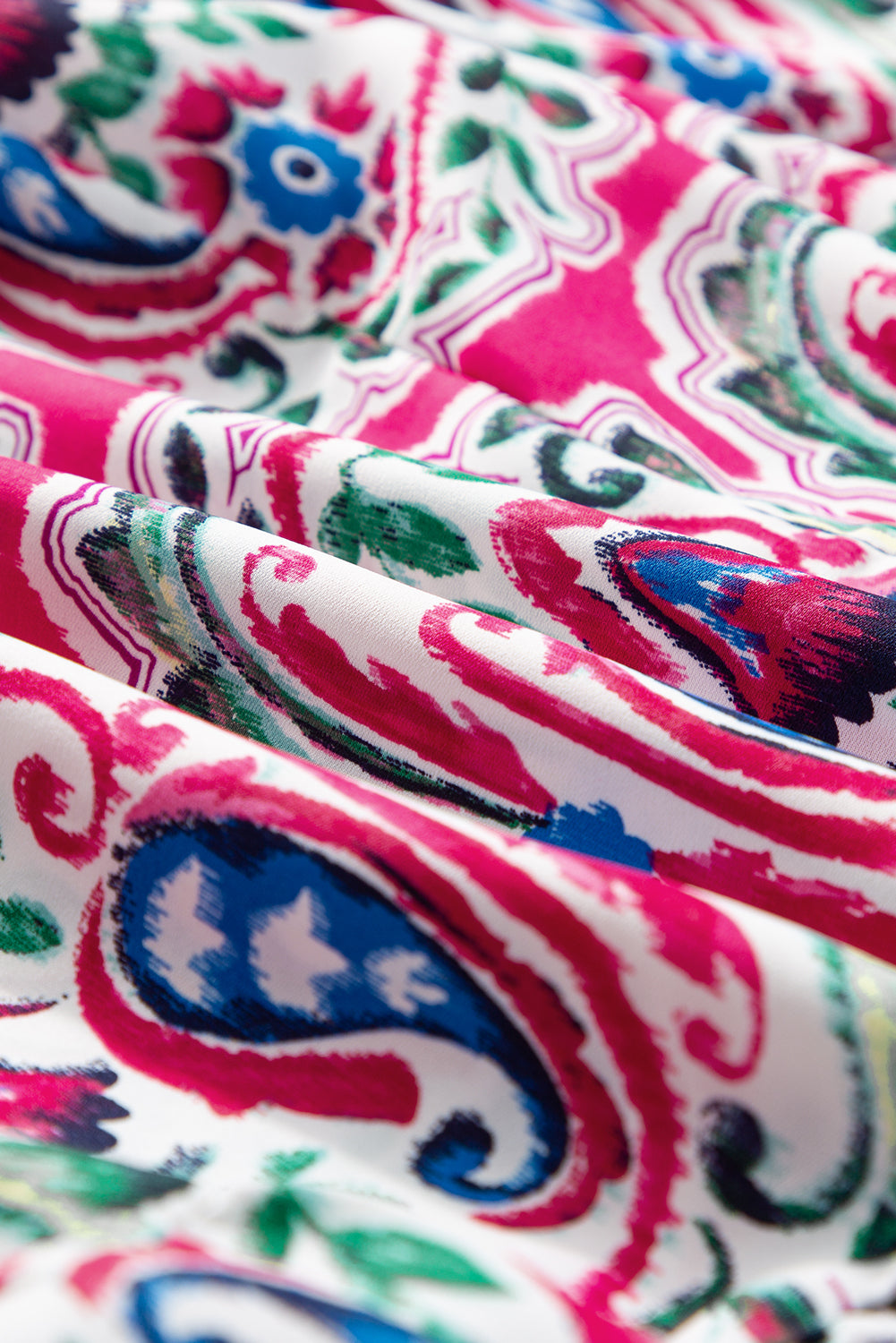 Pink Bohemian Print Tie Neck Ruffle Hem Short Dress