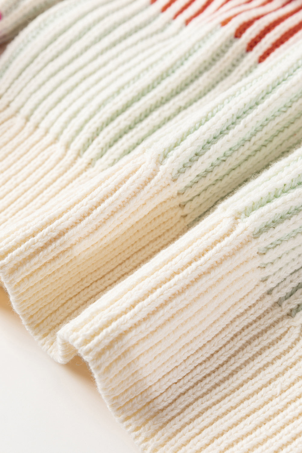 Pink Colorblock Textured Knit Bubble Sleeve Sweater