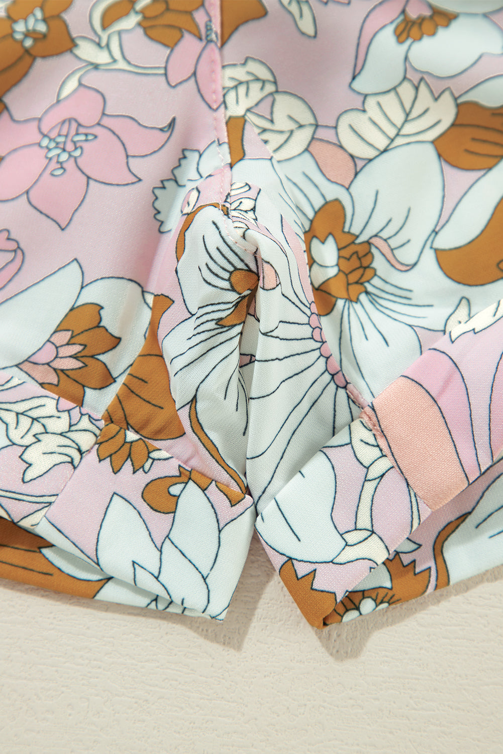 Pink Floral Short Sleeve Collared Button Front Romper