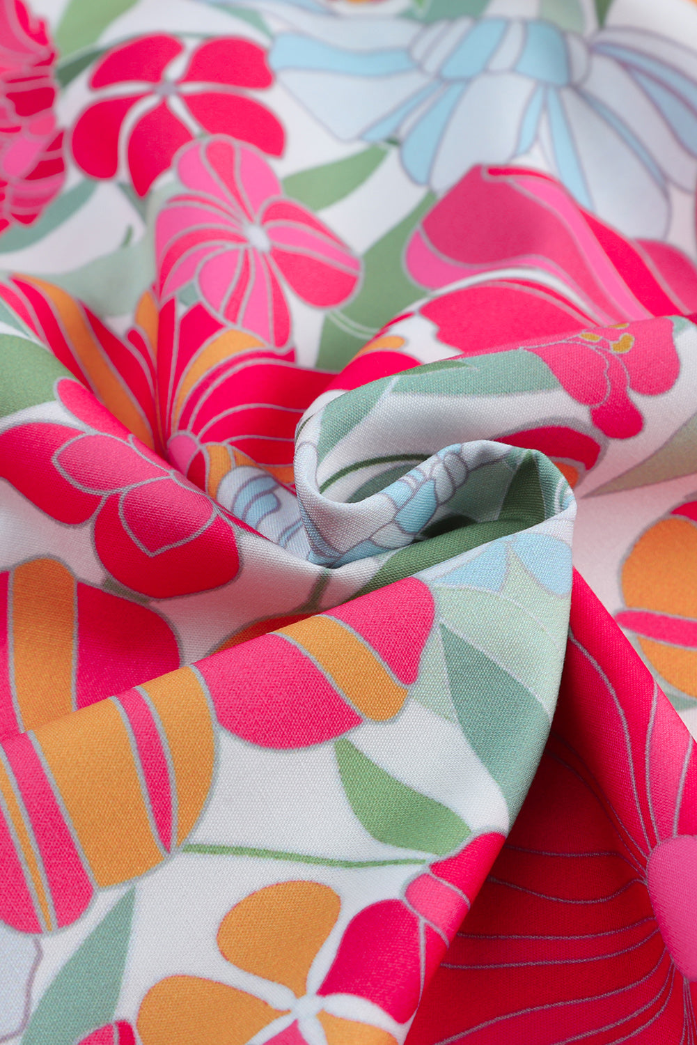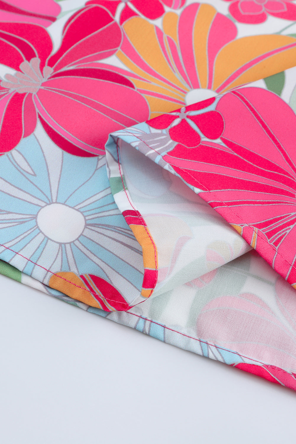 Pink Flutter Sleeve V Neck Floral Print Shift Blouse