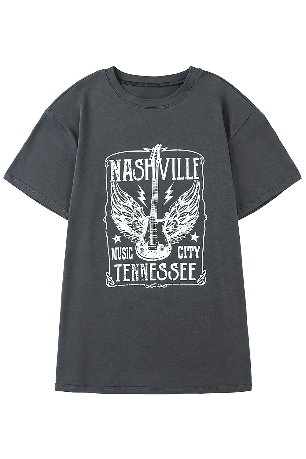 Pink Guitar Slogan Letter Graphic Print Oversized T Shirt