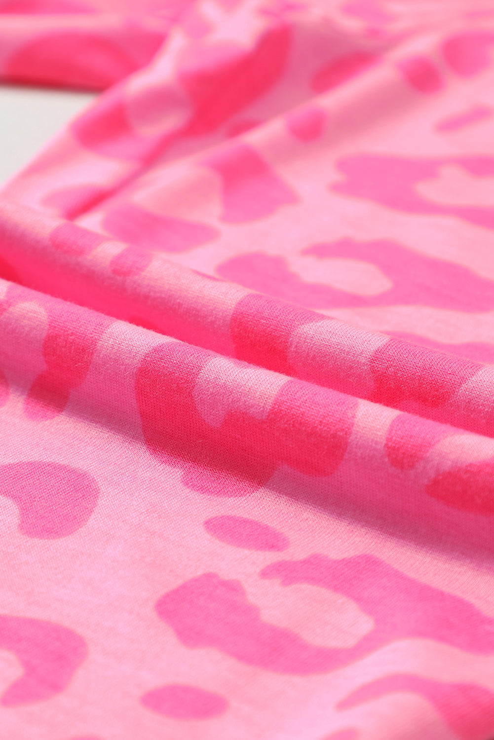 Pink Leopard Print Ankle-length High Waist Skinny Pants