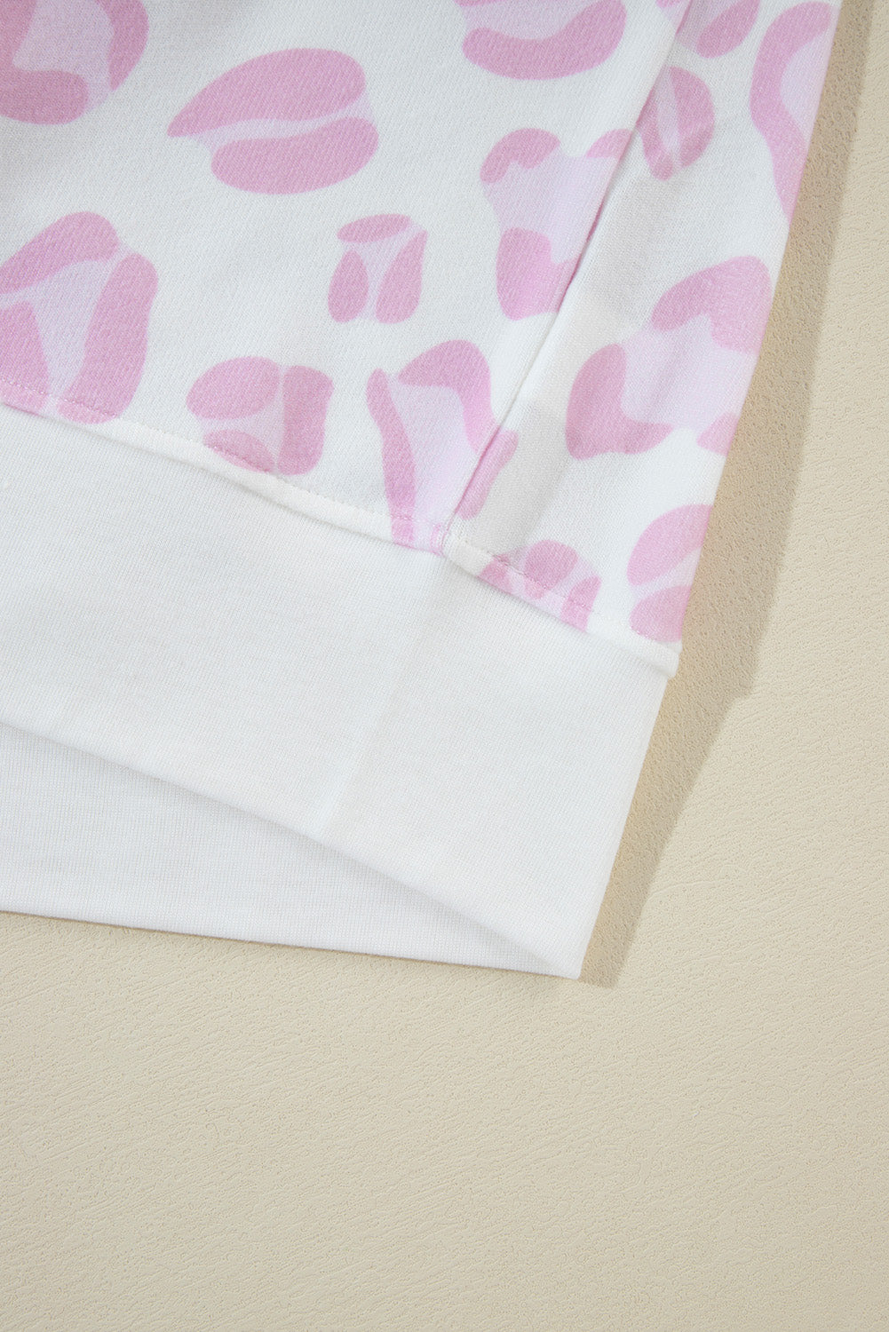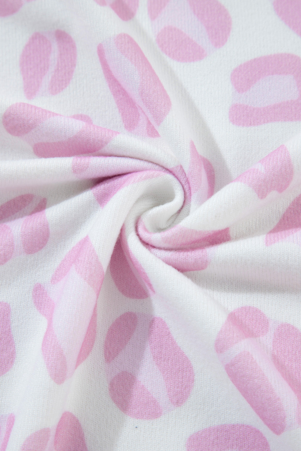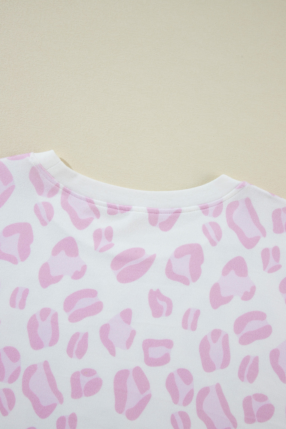 Pink Leopard Print Long Sleeve Top Plus Size Shorts Set