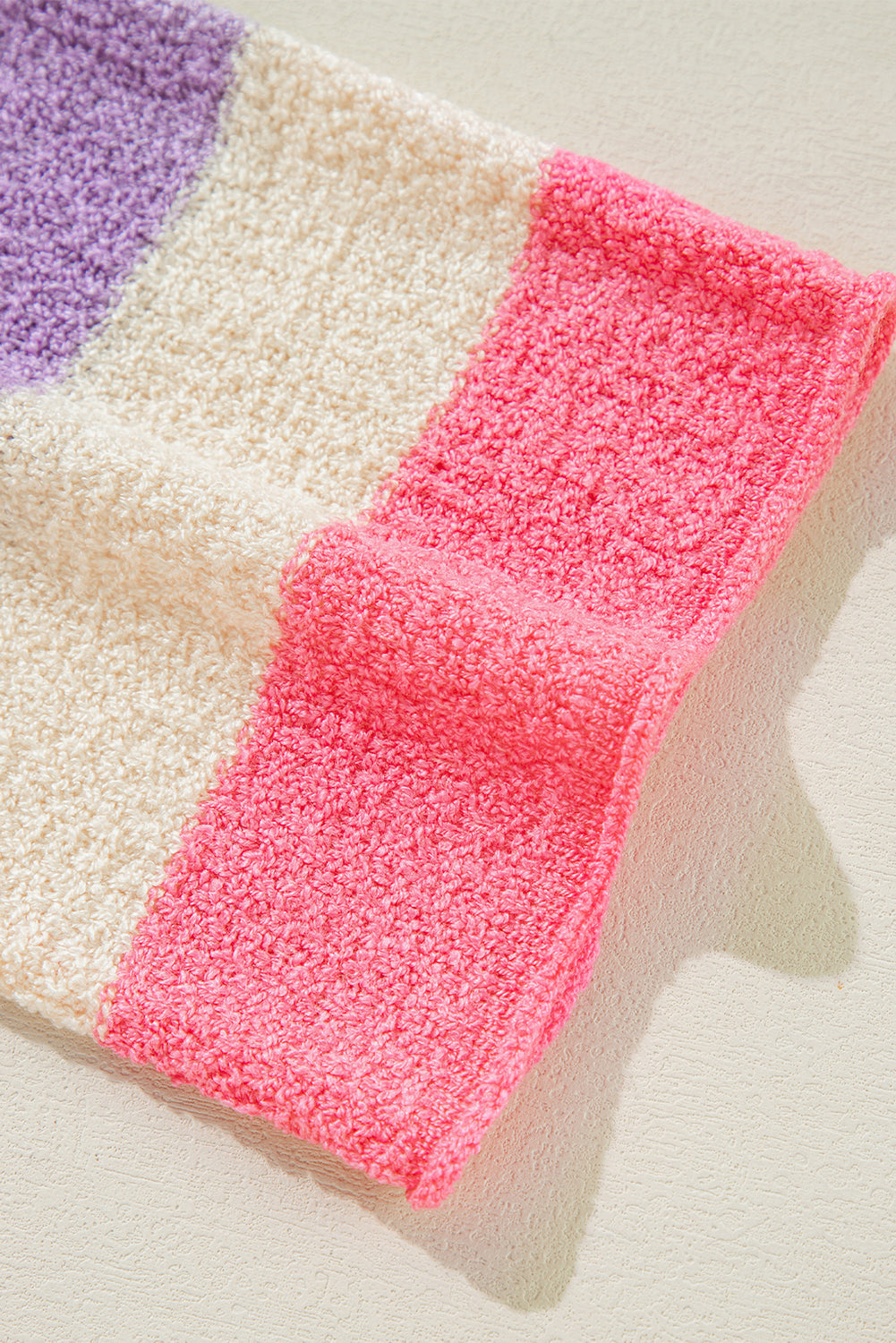Pink Oversized Colorblock V Neck Hooded Sweater