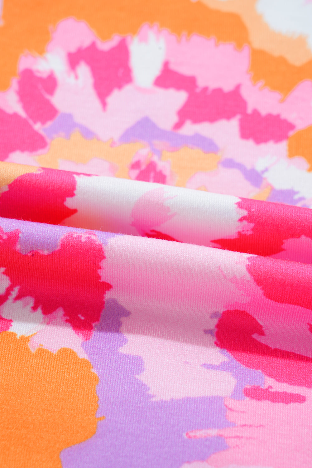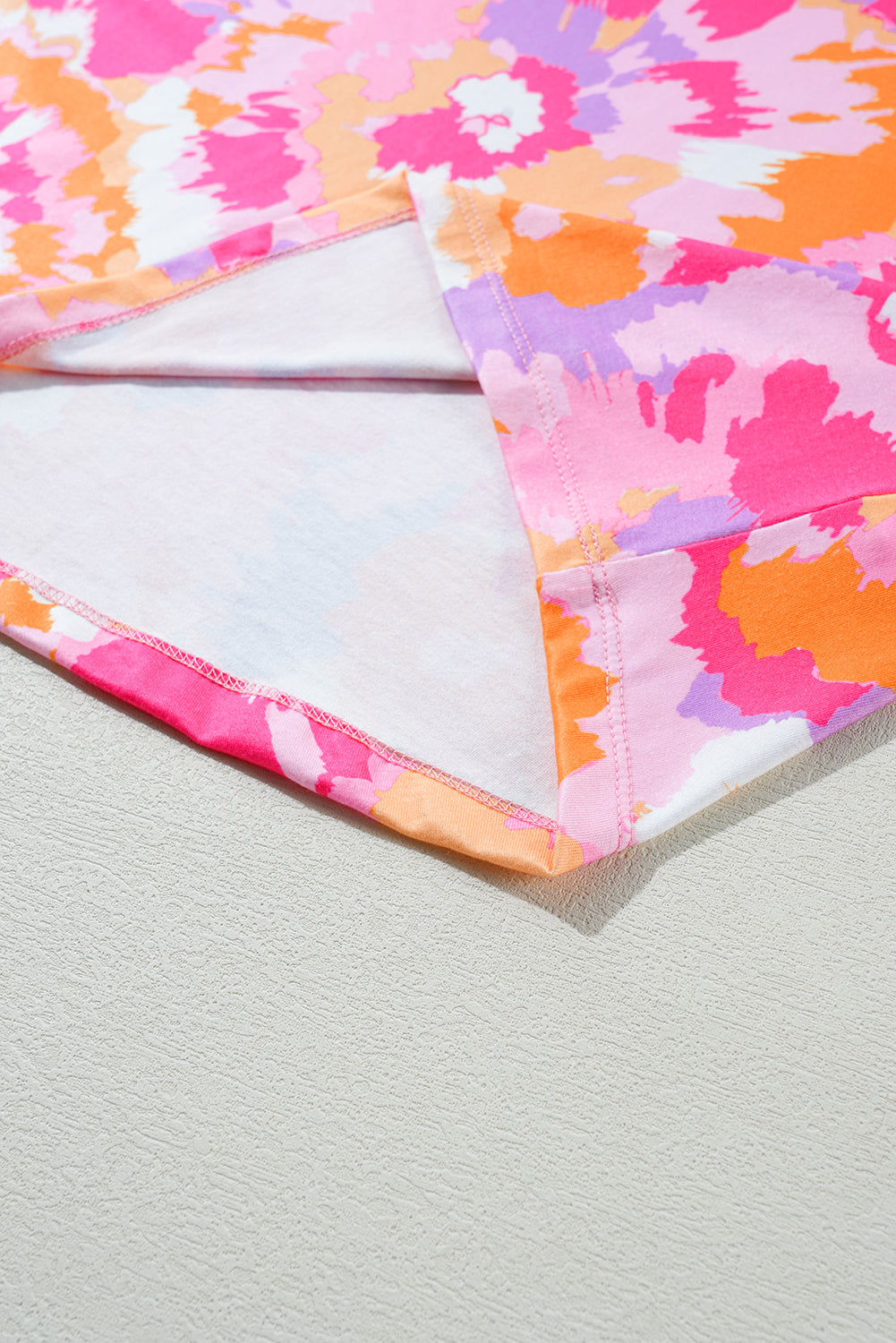 Pink Plus Size Abstract Floral Print V Neck Blouse
