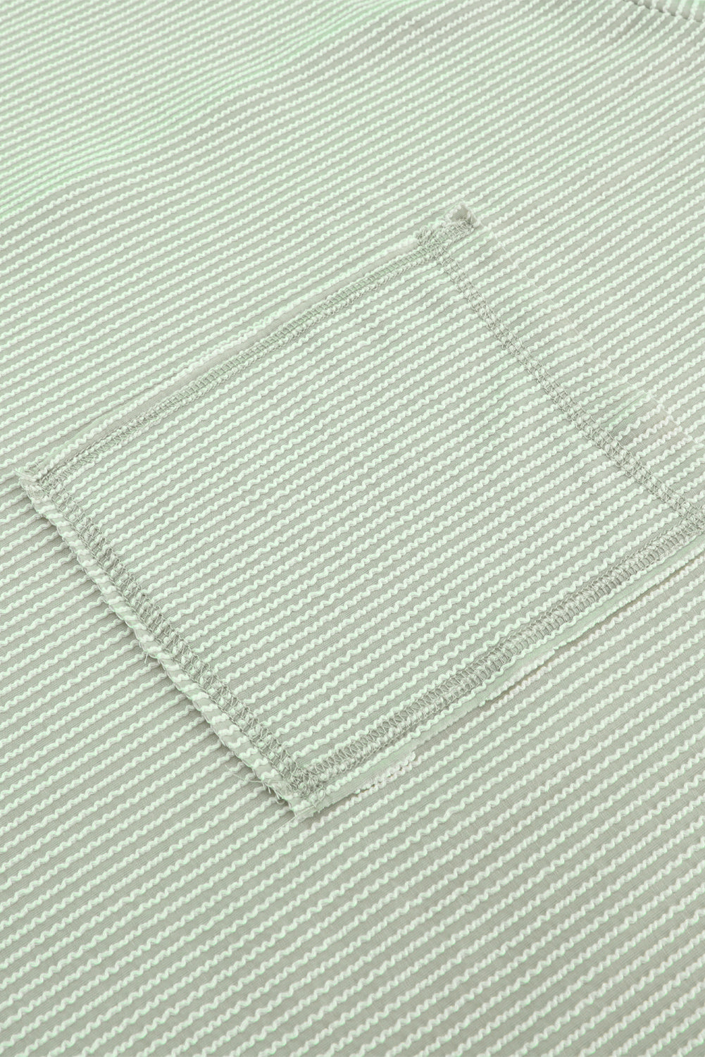 Pink Ribbed Roll-tab Sleeve Chest Pocket Oversize Top