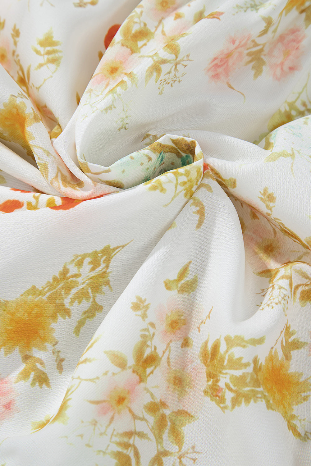 Trendy bubble sleeves add a playful and romantic touch to the dress.