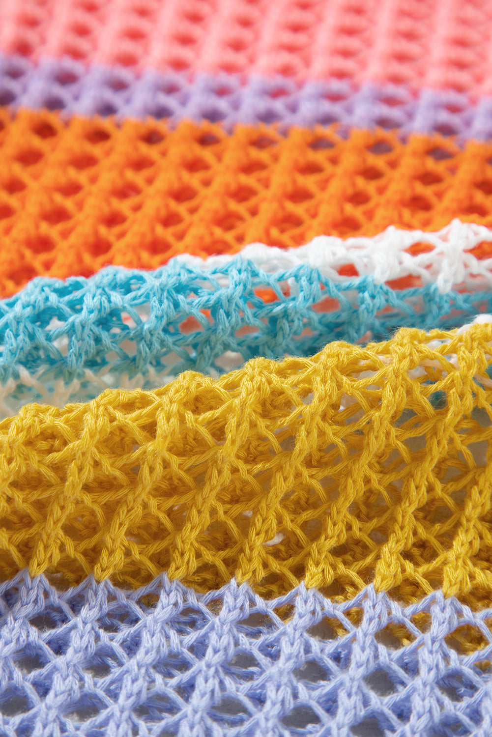 Pink Stripe Colorblock Hollowed Crochet 3/4 Sleeve Sweater