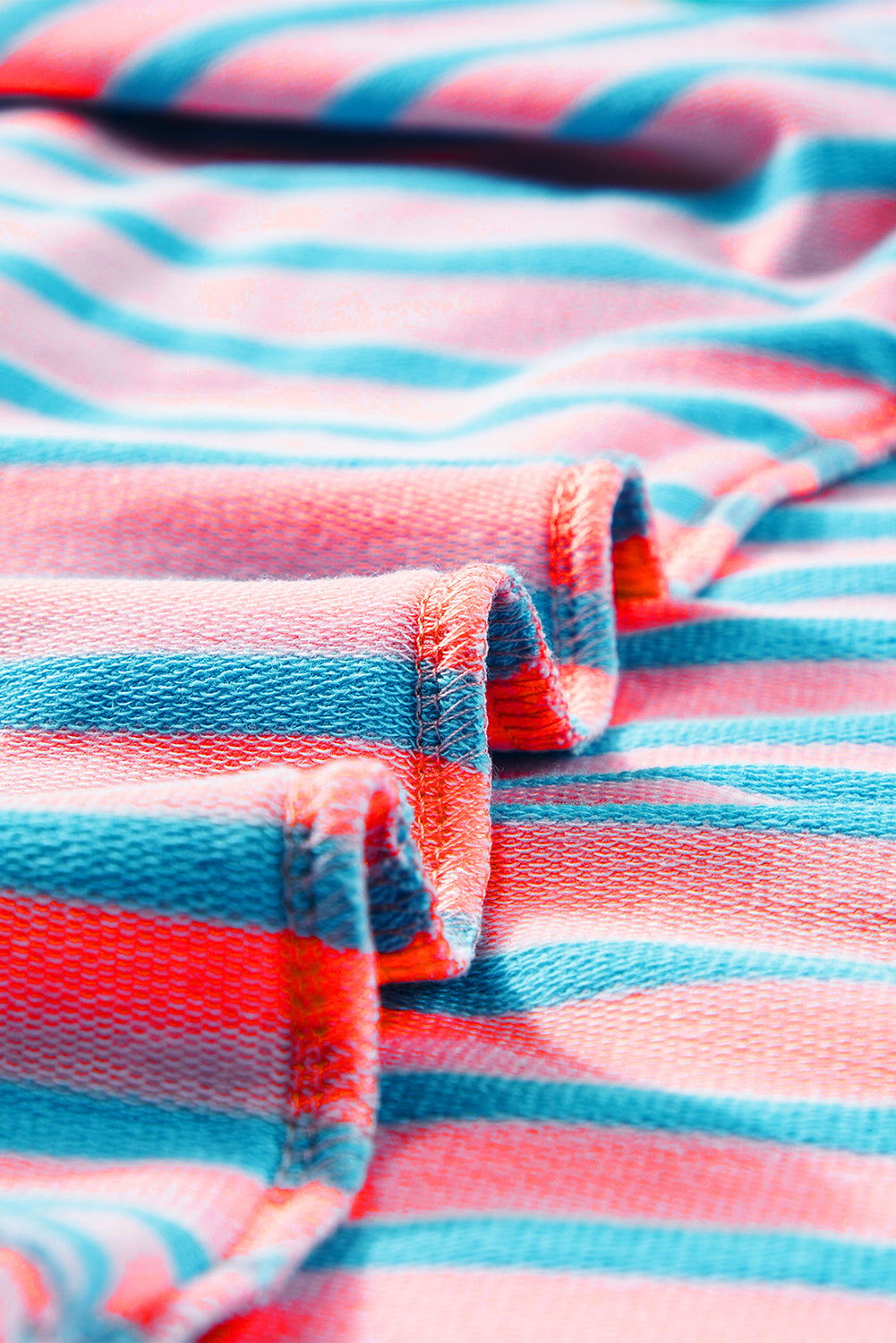 Pink Stripe Contrast Trim Half Zip Short Sleeve Top
