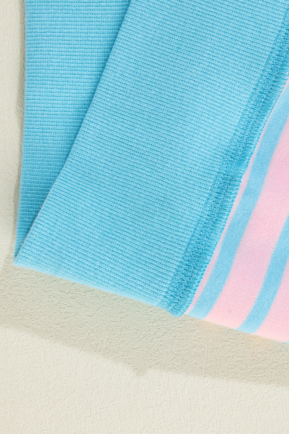 Pink Stripe Contrast Trim High Low Pullover Tunic Sweatshirt