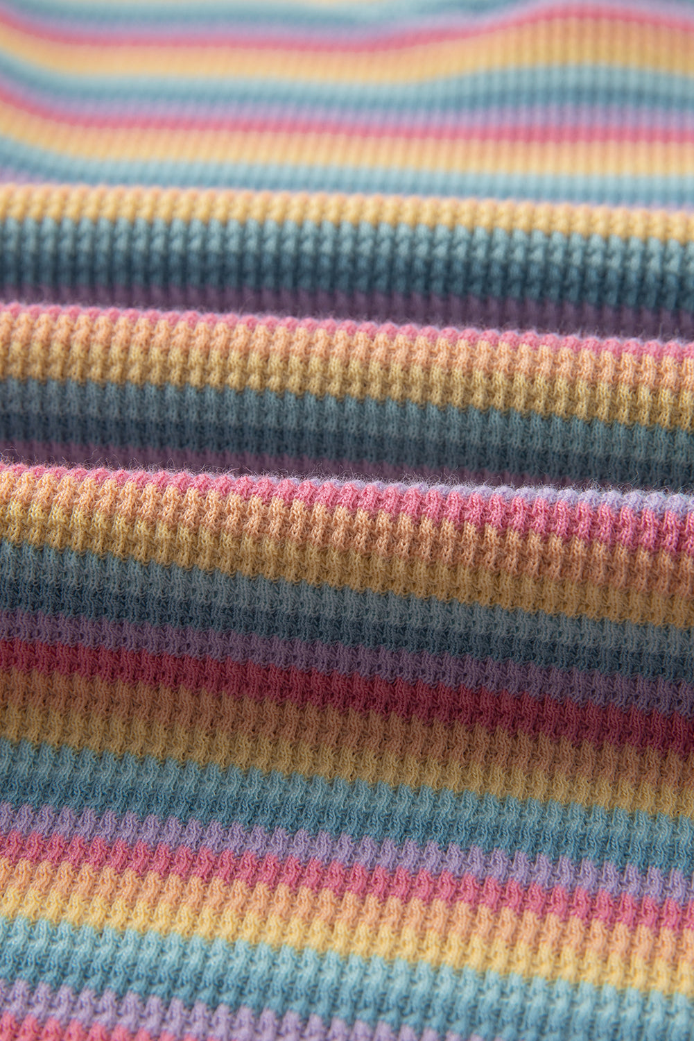 Pink Stripe Crew Neck Tee and Tasseled Drawstring Shorts Set