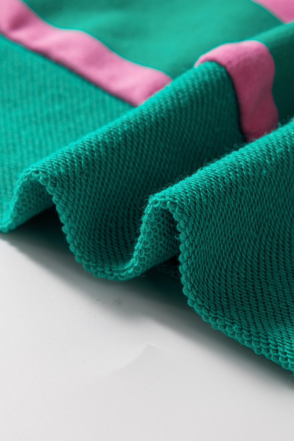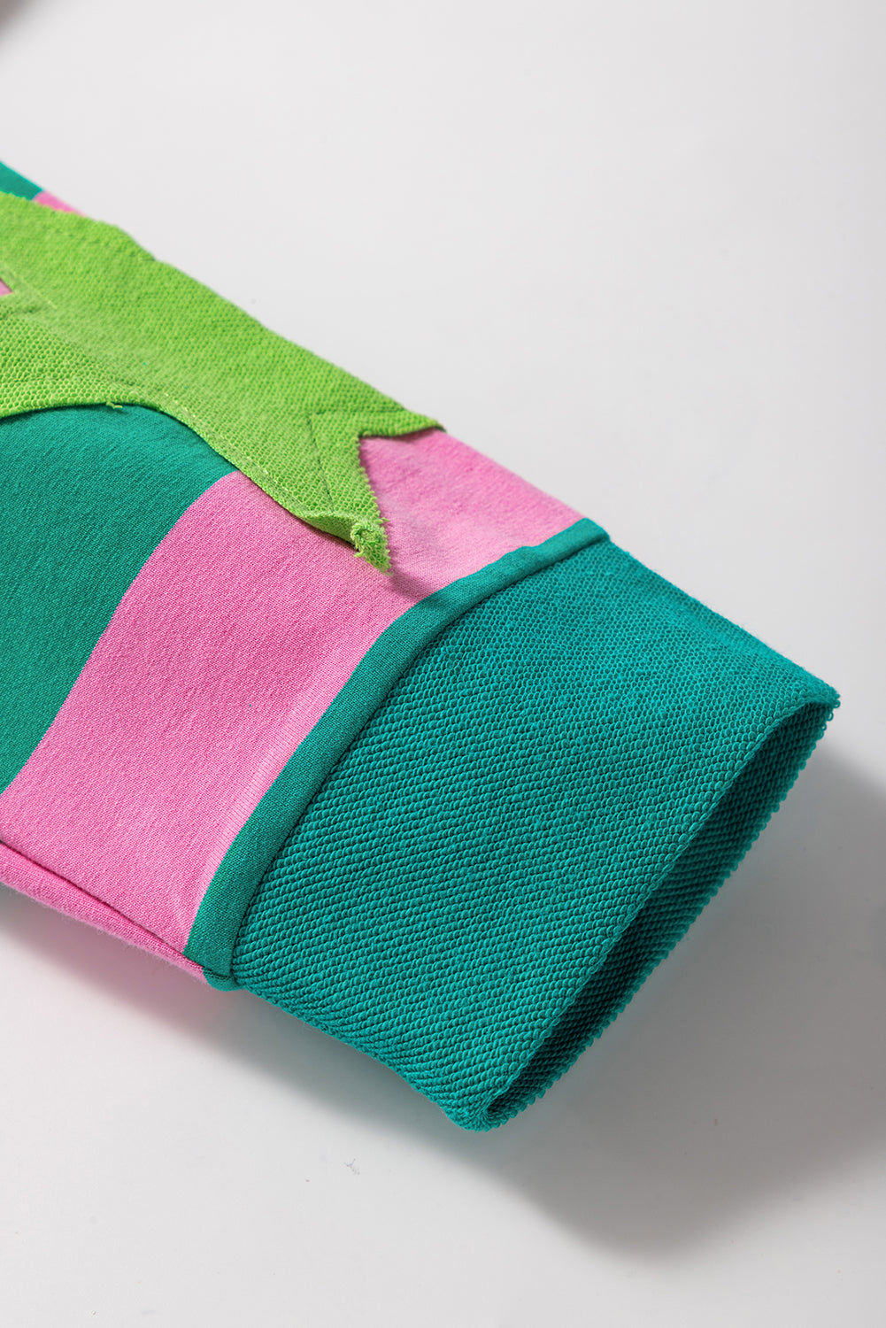 Pink Stripe Star Patchwork Round Neck Pullover Sweatshirt