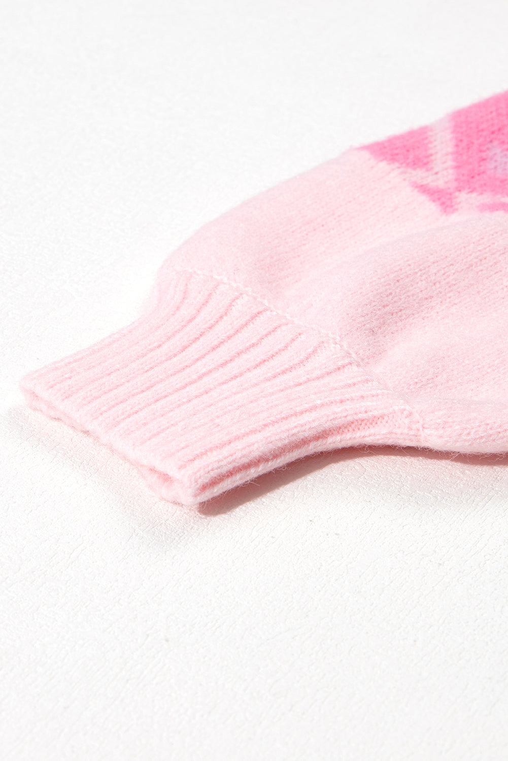 Pink Western Aztec Geometric Drop Shoulder Sweater