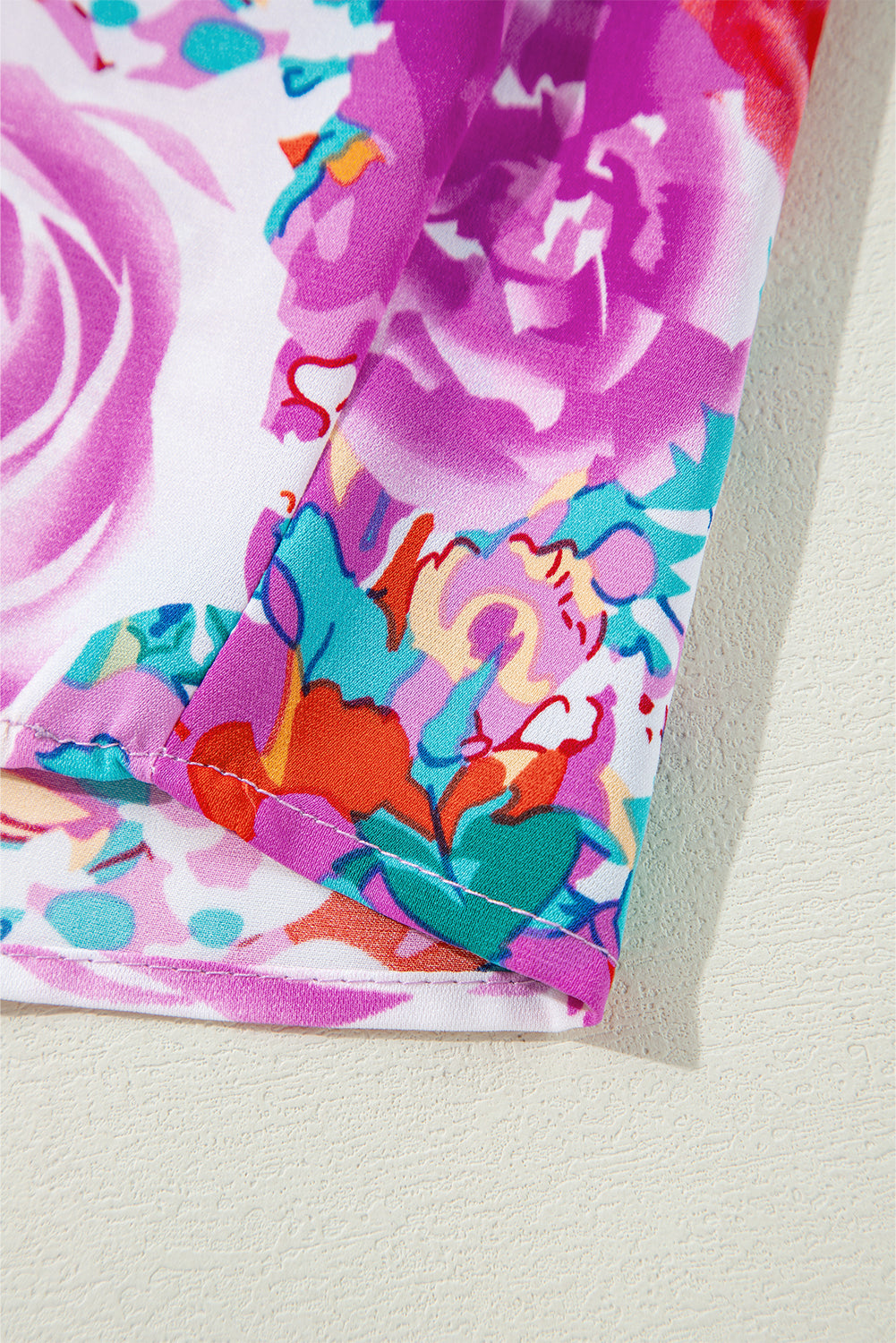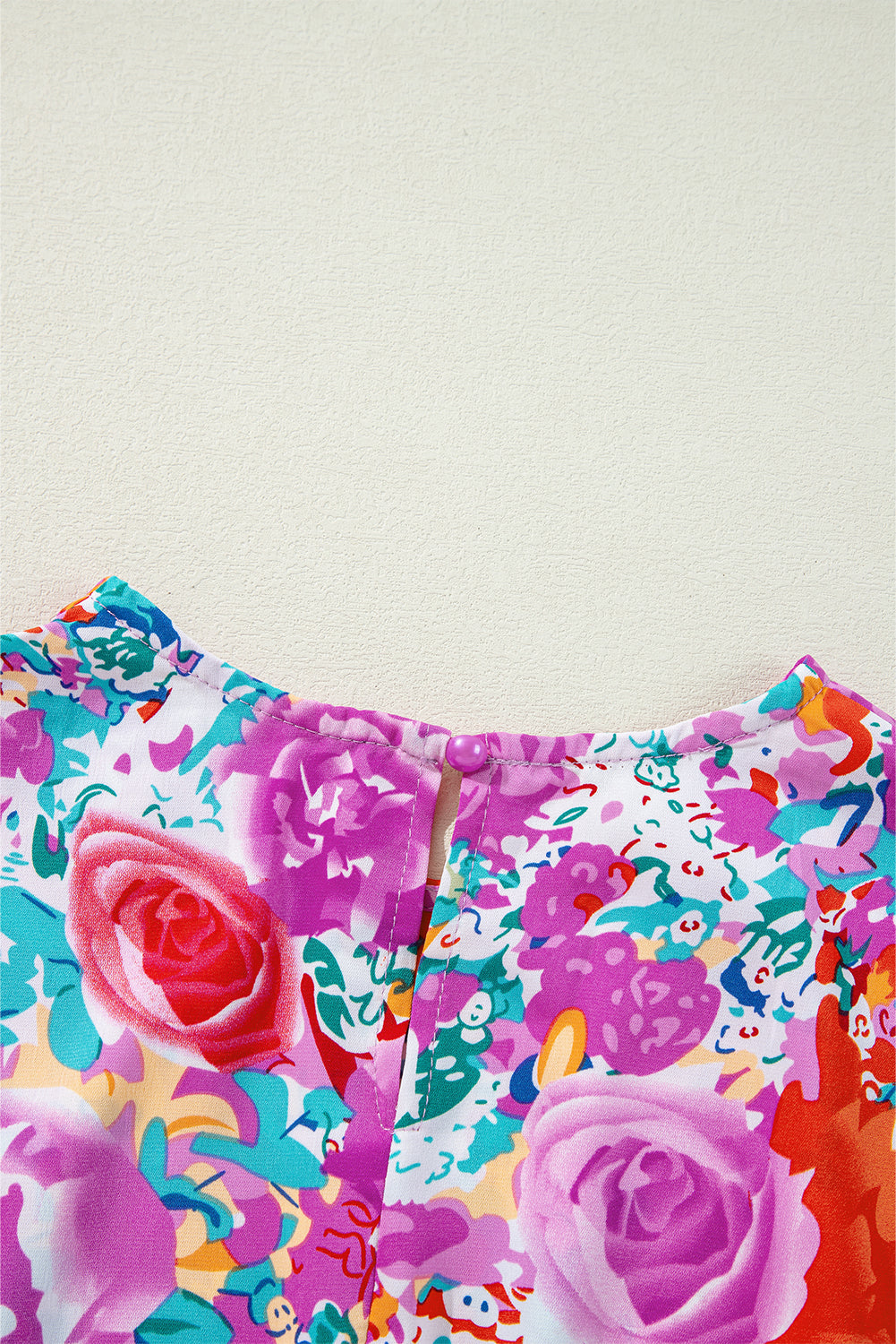- The vibrant floral print paired with puff sleeves provides an elegant touch