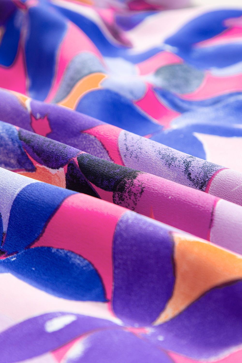 Purple Flower Print Short Puff Sleeve Ruffled Dress