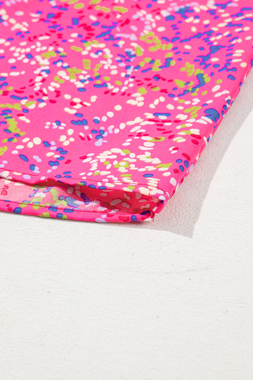 Purple Plus Size Floral Print Puff Sleeve V Neck Blouse