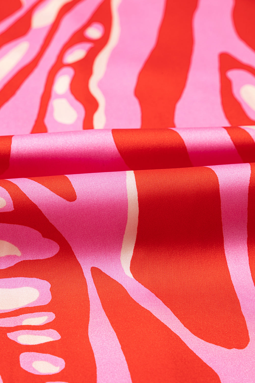 Red Abstract Print V Neck Batwing Sleeve Oversized Blouse