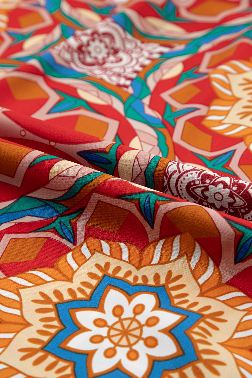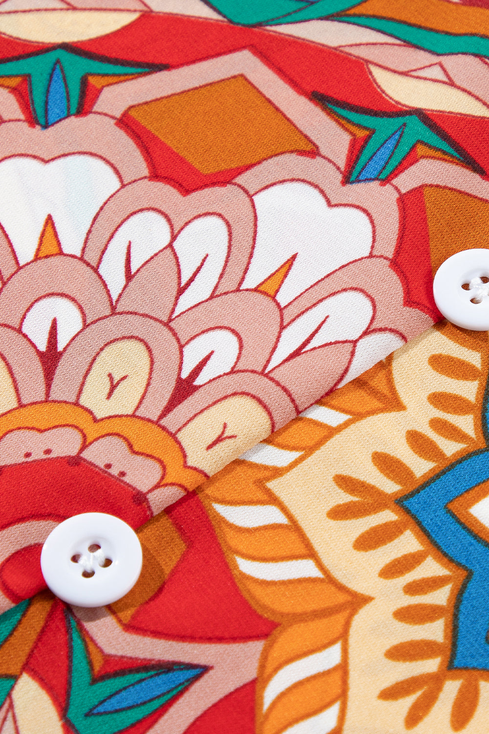 Red Floral Print Batwing Sleeve V Neck Blouse